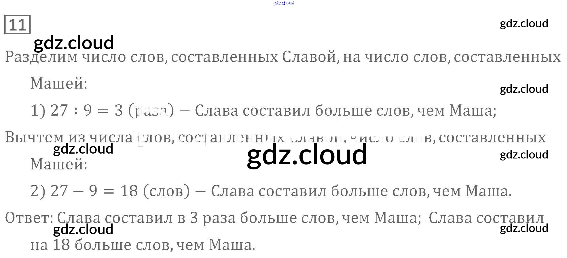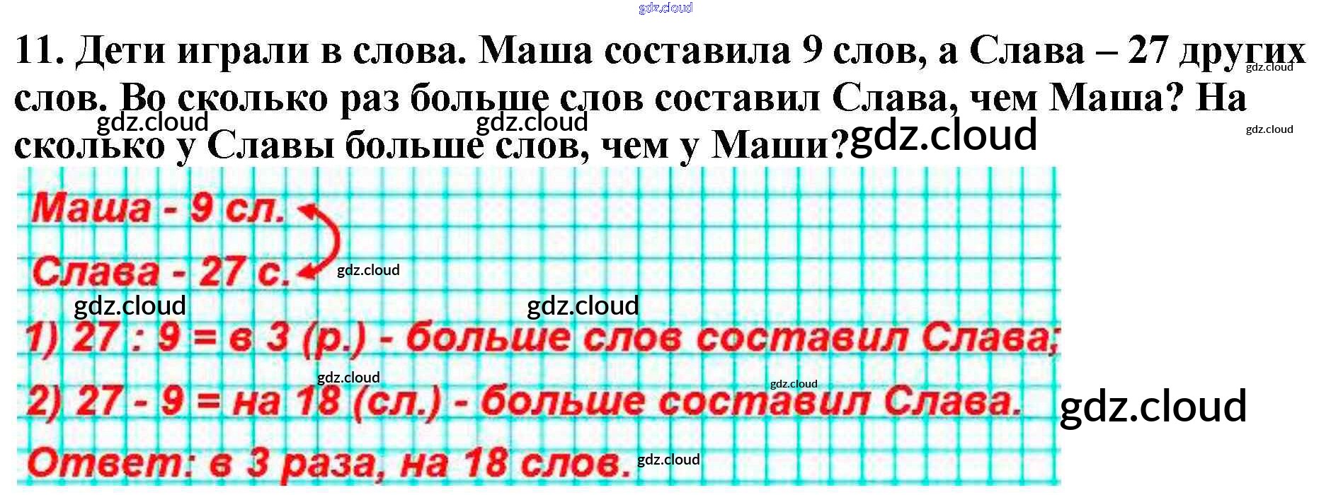 Ответ на задание 11 Учебник Математика за 3 (третий) класс Моро, Бантова, Бельтюкова, Волкова, Степанова Школа России 2015 Часть 1, 2