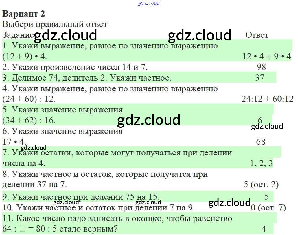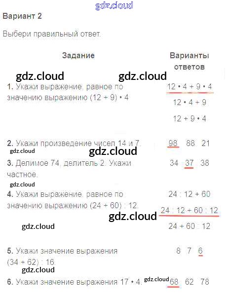 Ответ на задание Вариант 2 Учебник Математика за 3 (третий) класс Моро, Бантова, Бельтюкова, Волкова, Степанова Школа России 2015 Часть 1, 2