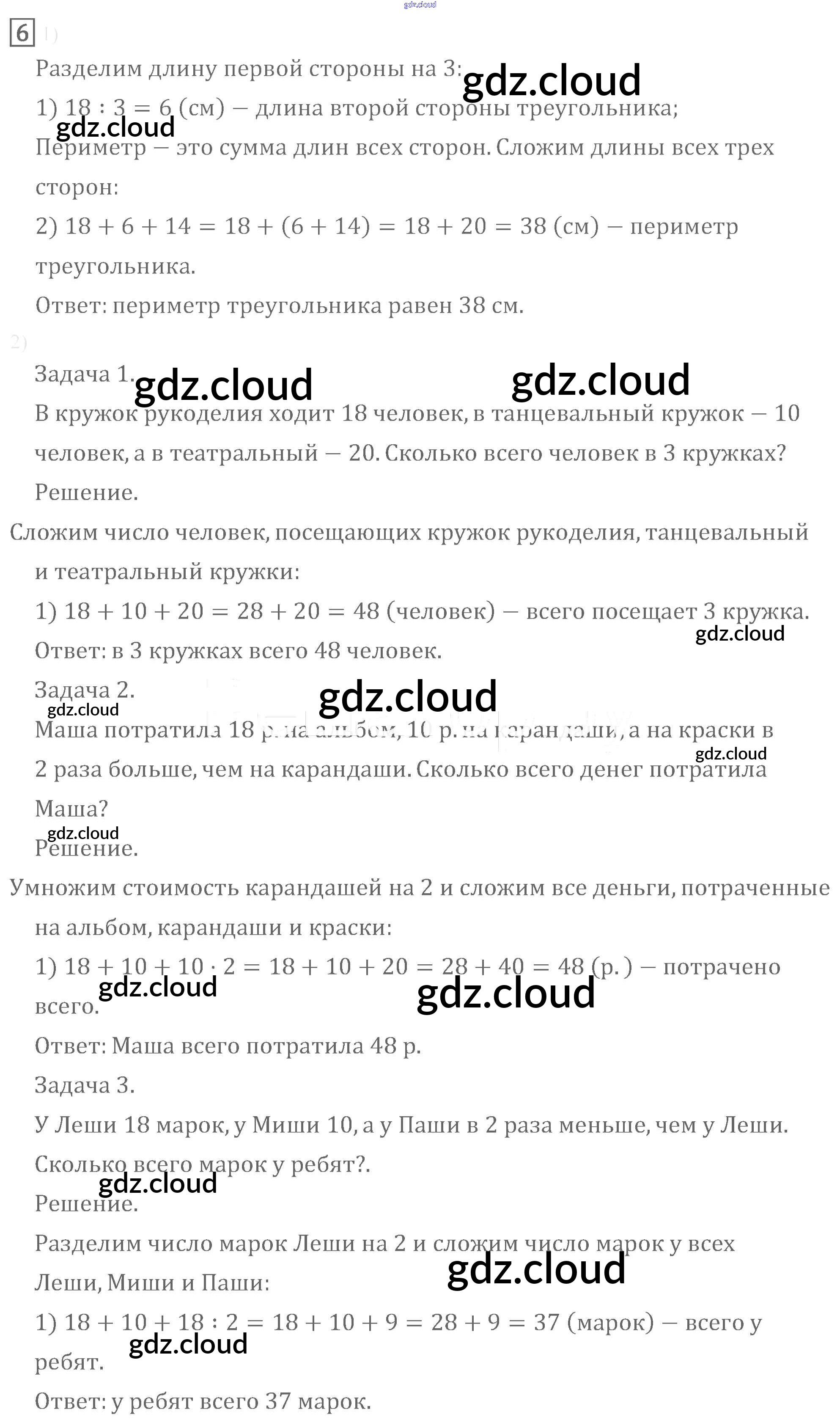 Ответ на задание 6 Учебник Математика за 3 (третий) класс Моро, Бантова, Бельтюкова, Волкова, Степанова Школа России 2015 Часть 1, 2