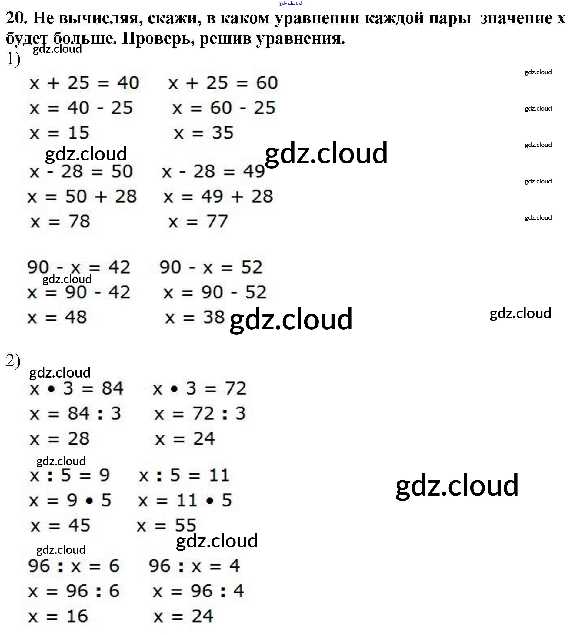 Ответ на задание 20 Учебник Математика за 3 (третий) класс Моро, Бантова, Бельтюкова, Волкова, Степанова Школа России 2015 Часть 1, 2