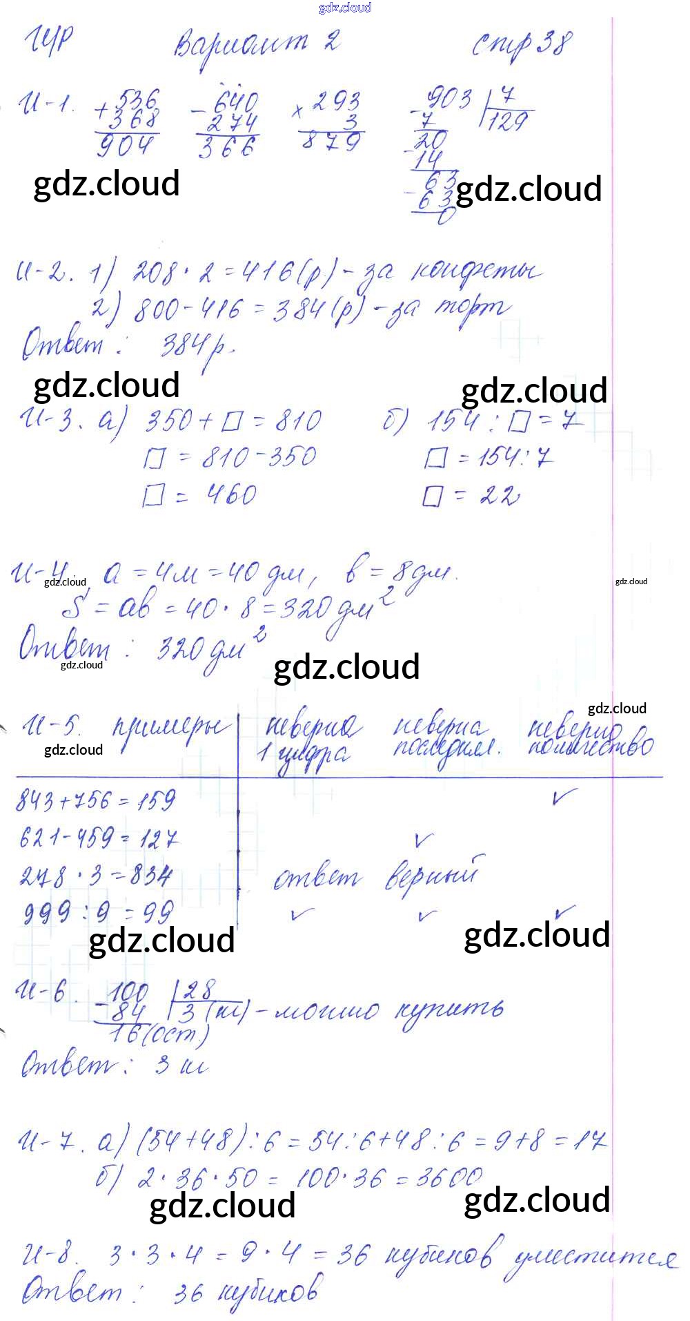 Ответ на задание вариант 2 Контрольные и диагностические работы Математика за 3 (третий) класс Башмаков, Нефедова Планета знаний 2018