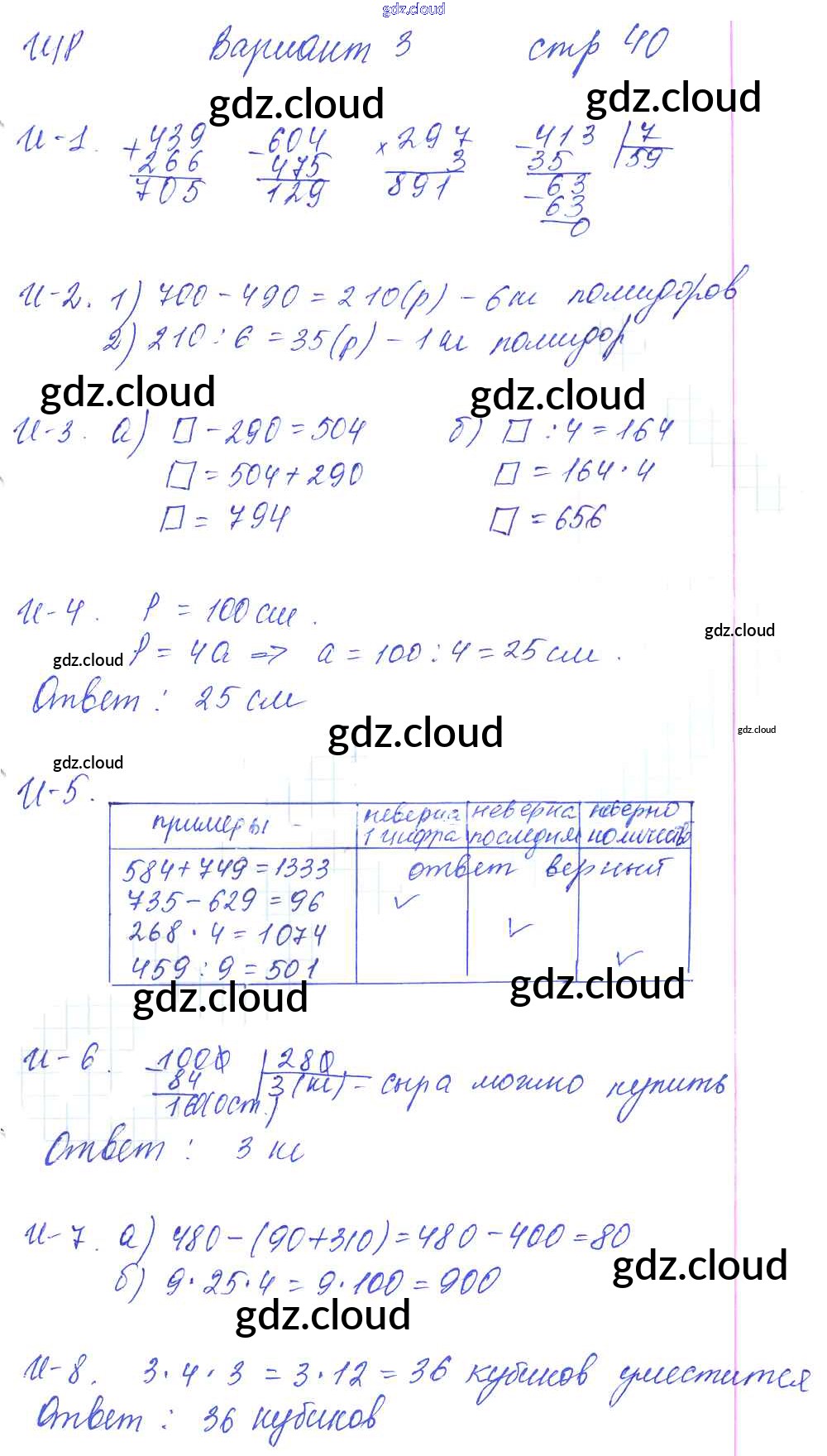 Ответ на задание вариант 3 Контрольные и диагностические работы Математика за 3 (третий) класс Башмаков, Нефедова Планета знаний 2018