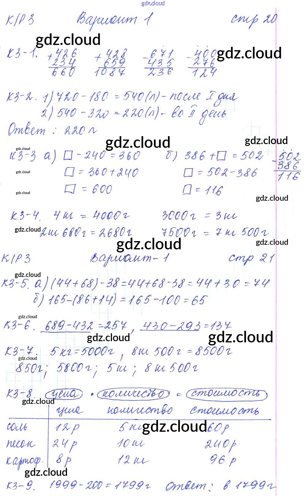 Ответы к контрольной работе №3 по Математике 3 класс Контрольные и диагностические работы Башмаков Планета знаний Дрофа