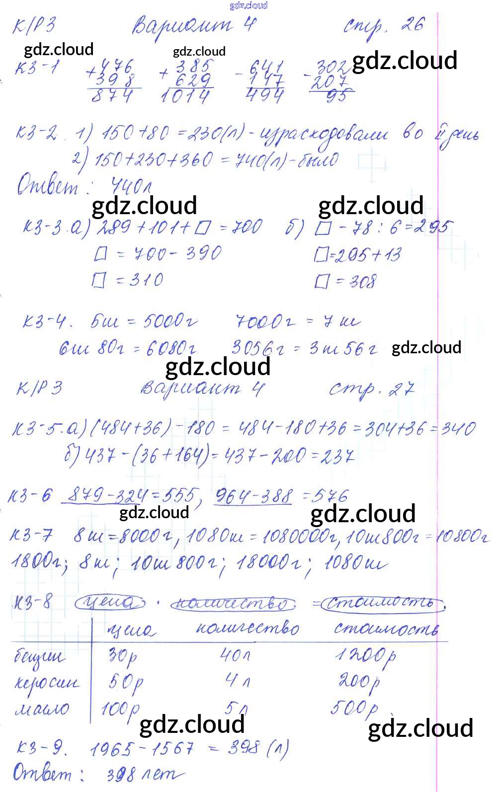 Ответ на задание вариант 4 Контрольные и диагностические работы Математика за 3 (третий) класс Башмаков, Нефедова Планета знаний 2018