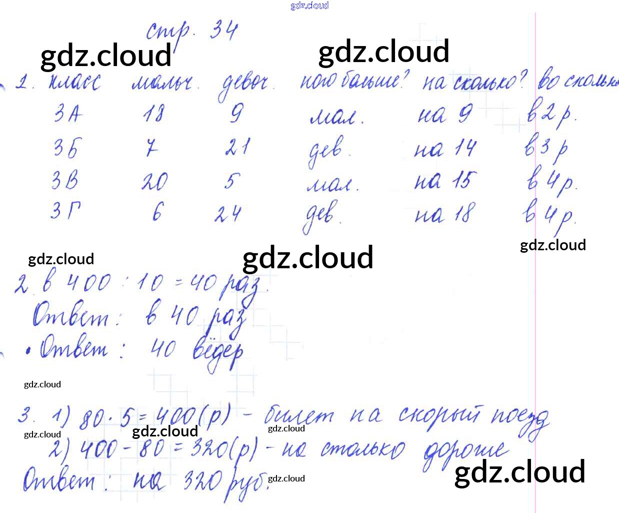 Ответ на задание 34 Рабочая тетрадь Математика за 3 (третий) класс Башмаков, Нефедова Планета знаний 2016 Часть 1, 2
