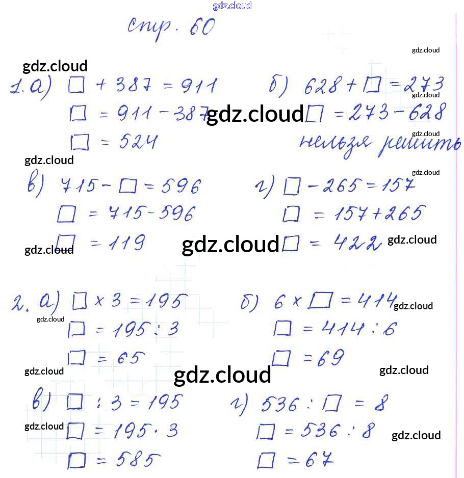 Ответ на задание 60 Рабочая тетрадь Математика за 3 (третий) класс Башмаков, Нефедова Планета знаний 2016 Часть 1, 2