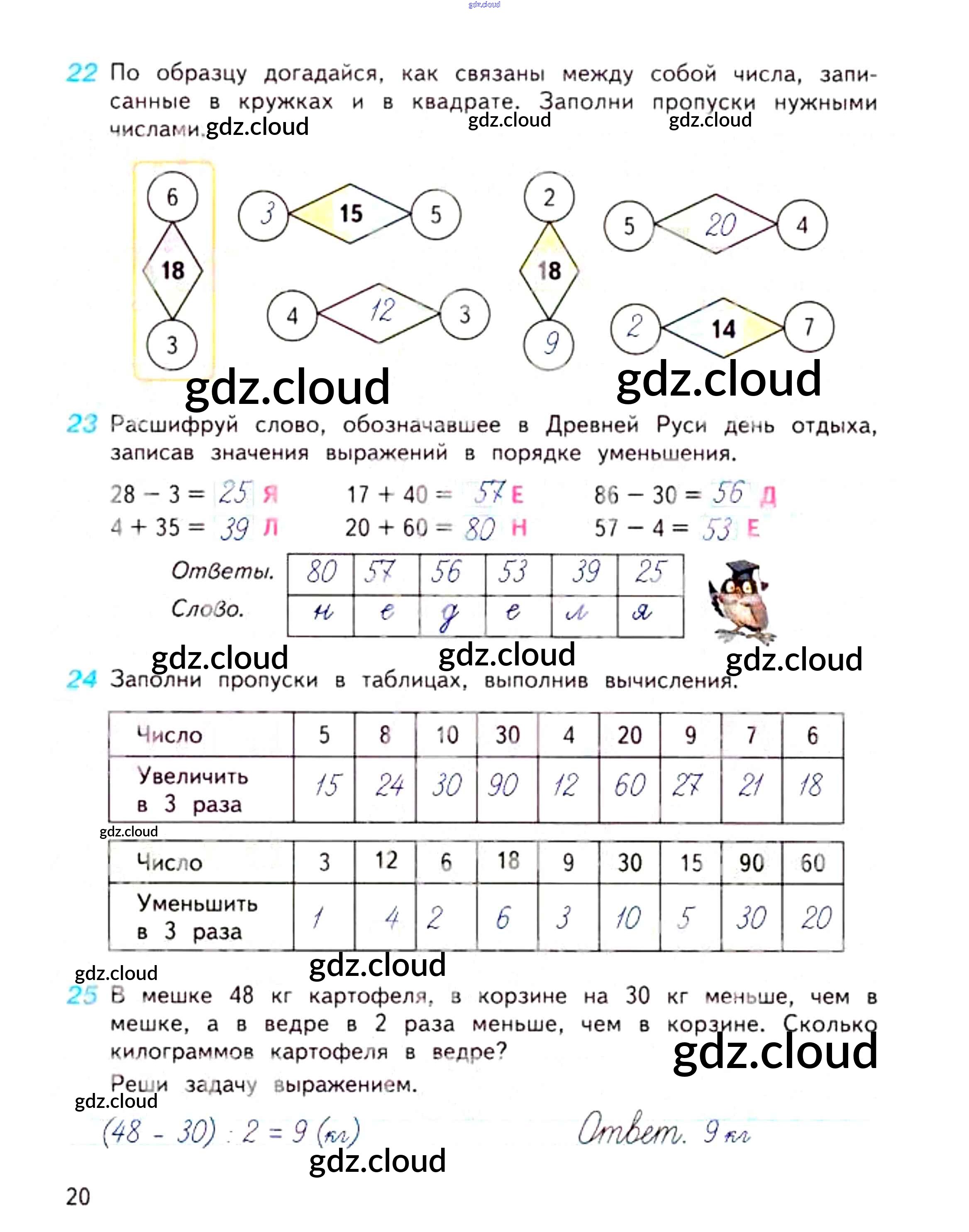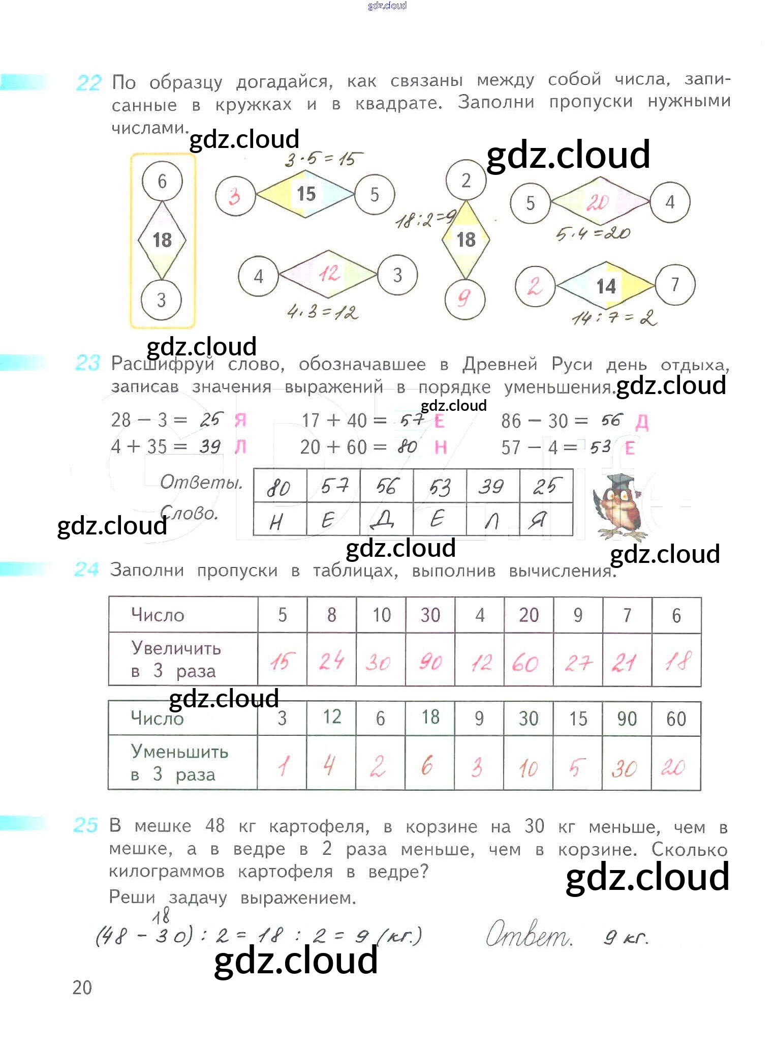 Ответ на задание 20 Рабочая тетрадь Математика за 3 (третий) класс Дорофеев, Миракова, Бука Перспектива 2017 Часть 1, 2