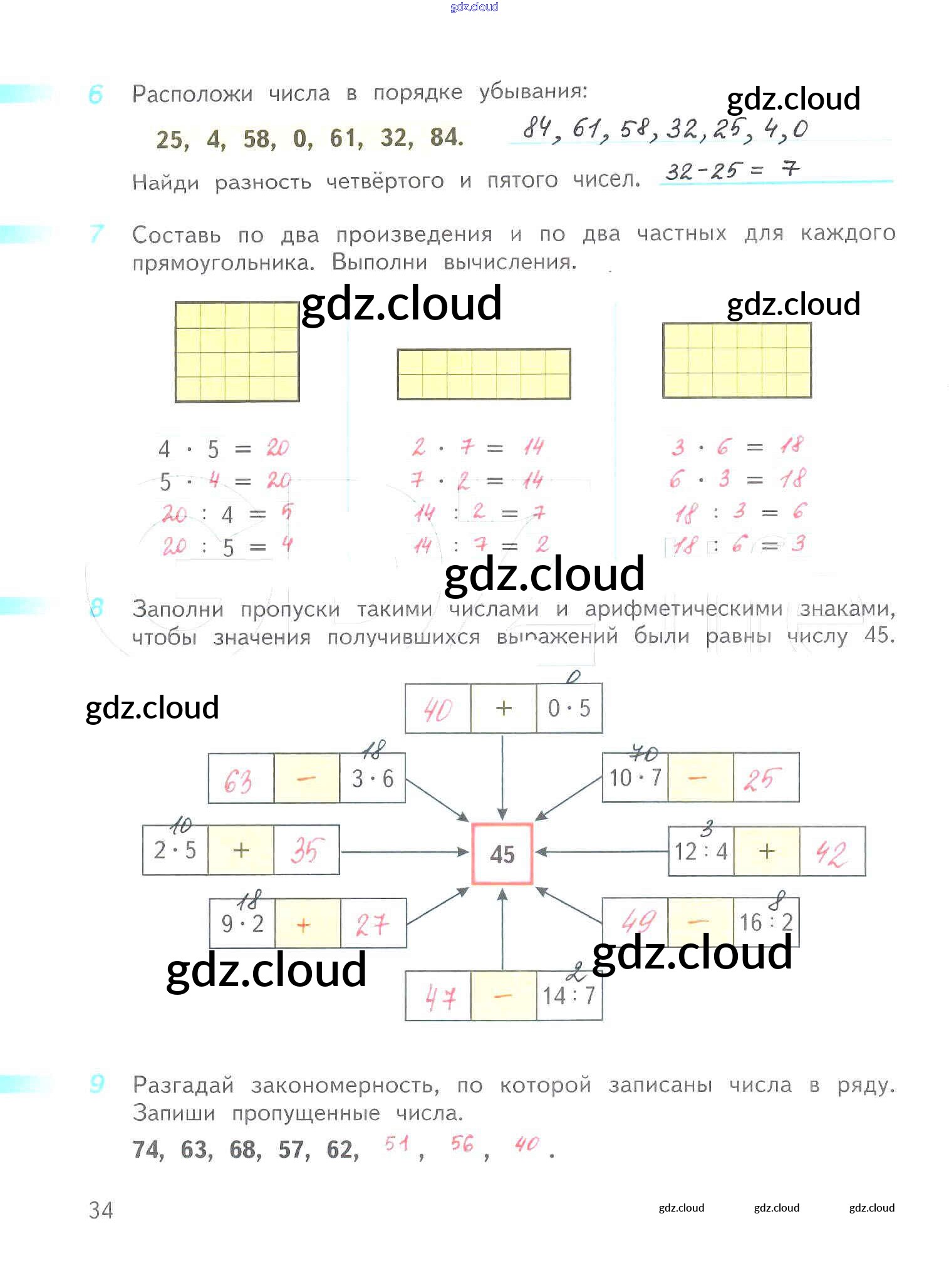 Ответ на задание 34 Рабочая тетрадь Математика за 3 (третий) класс Дорофеев, Миракова, Бука Перспектива 2017 Часть 1, 2
