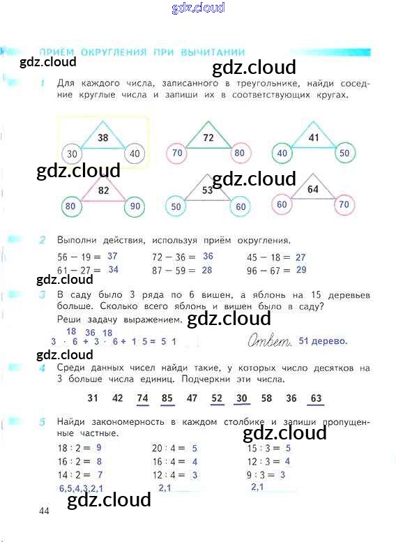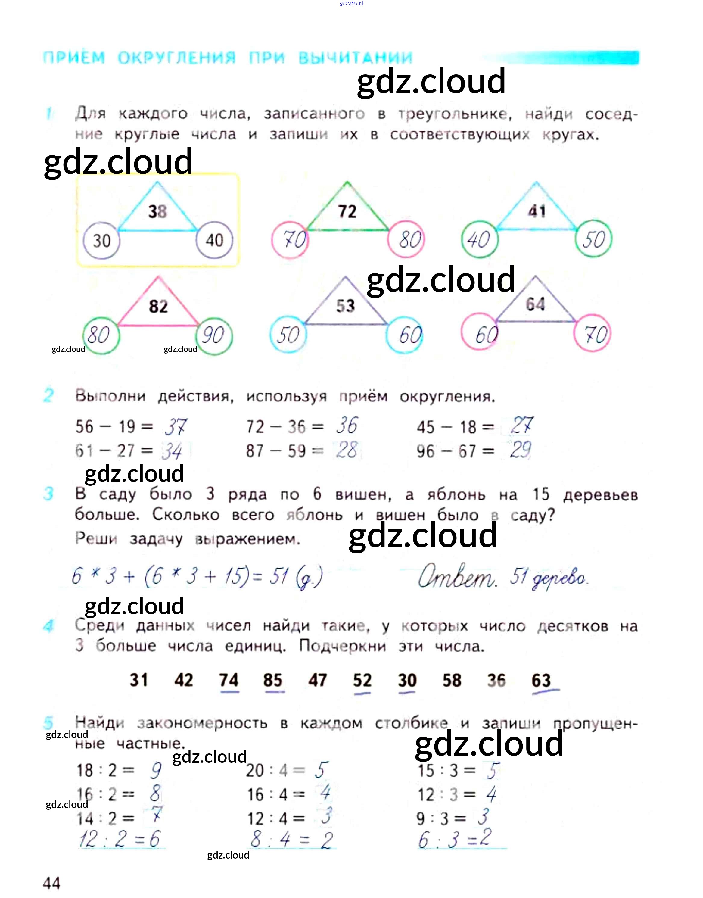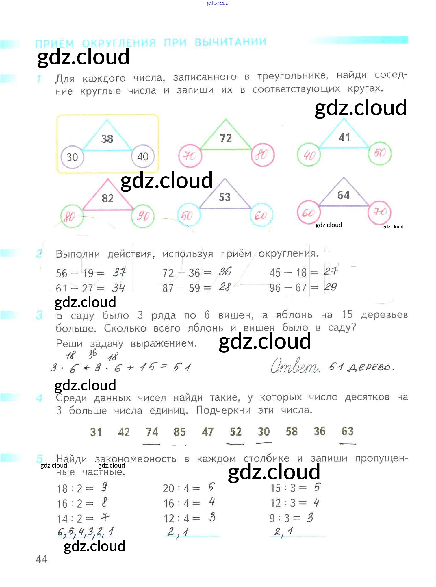 Ответ на задание 44 Рабочая тетрадь Математика за 3 (третий) класс Дорофеев, Миракова, Бука Перспектива 2017 Часть 1, 2