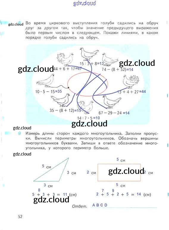 Ответ на задание 52 Рабочая тетрадь Математика за 3 (третий) класс Дорофеев, Миракова, Бука Перспектива 2017 Часть 1, 2