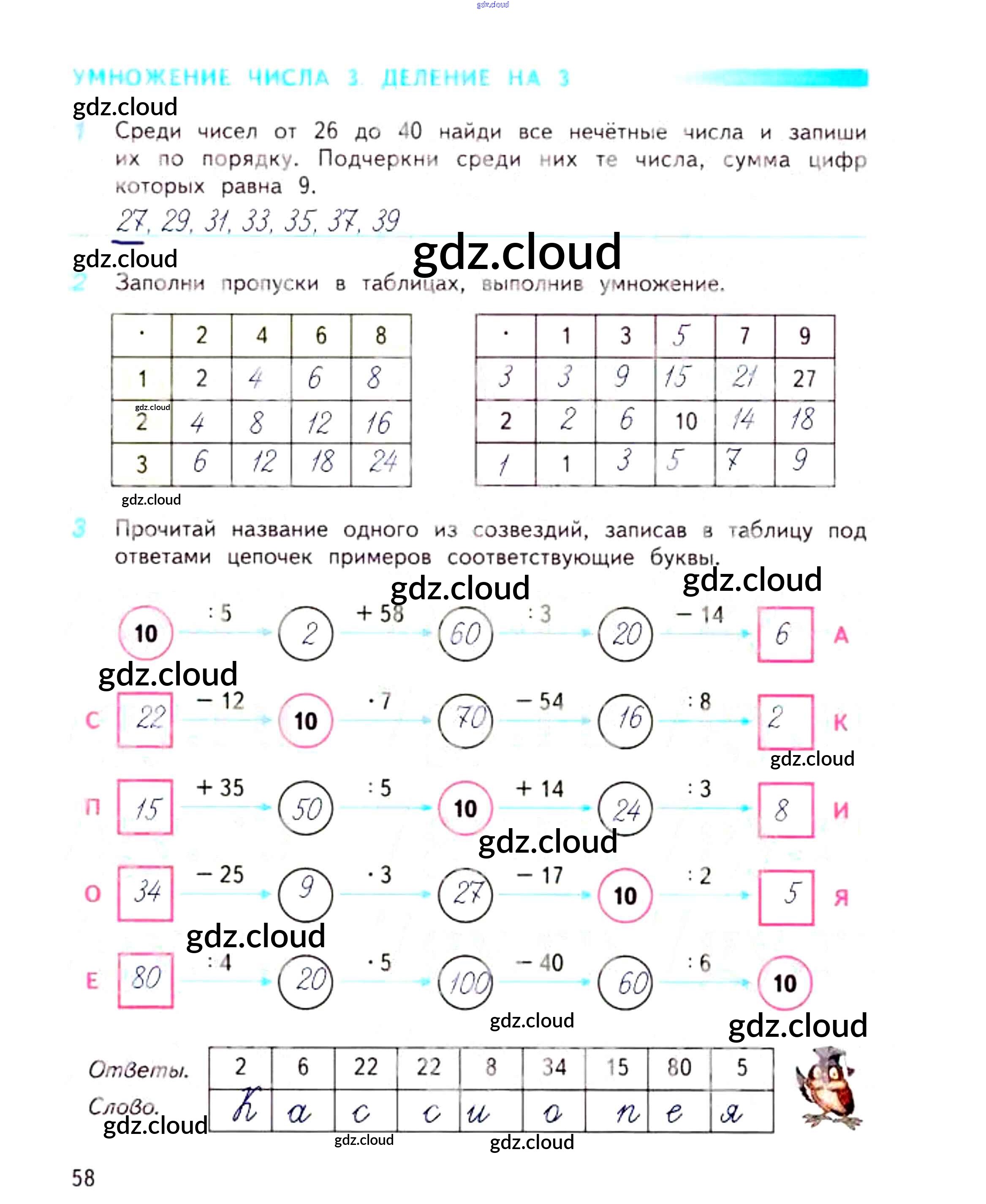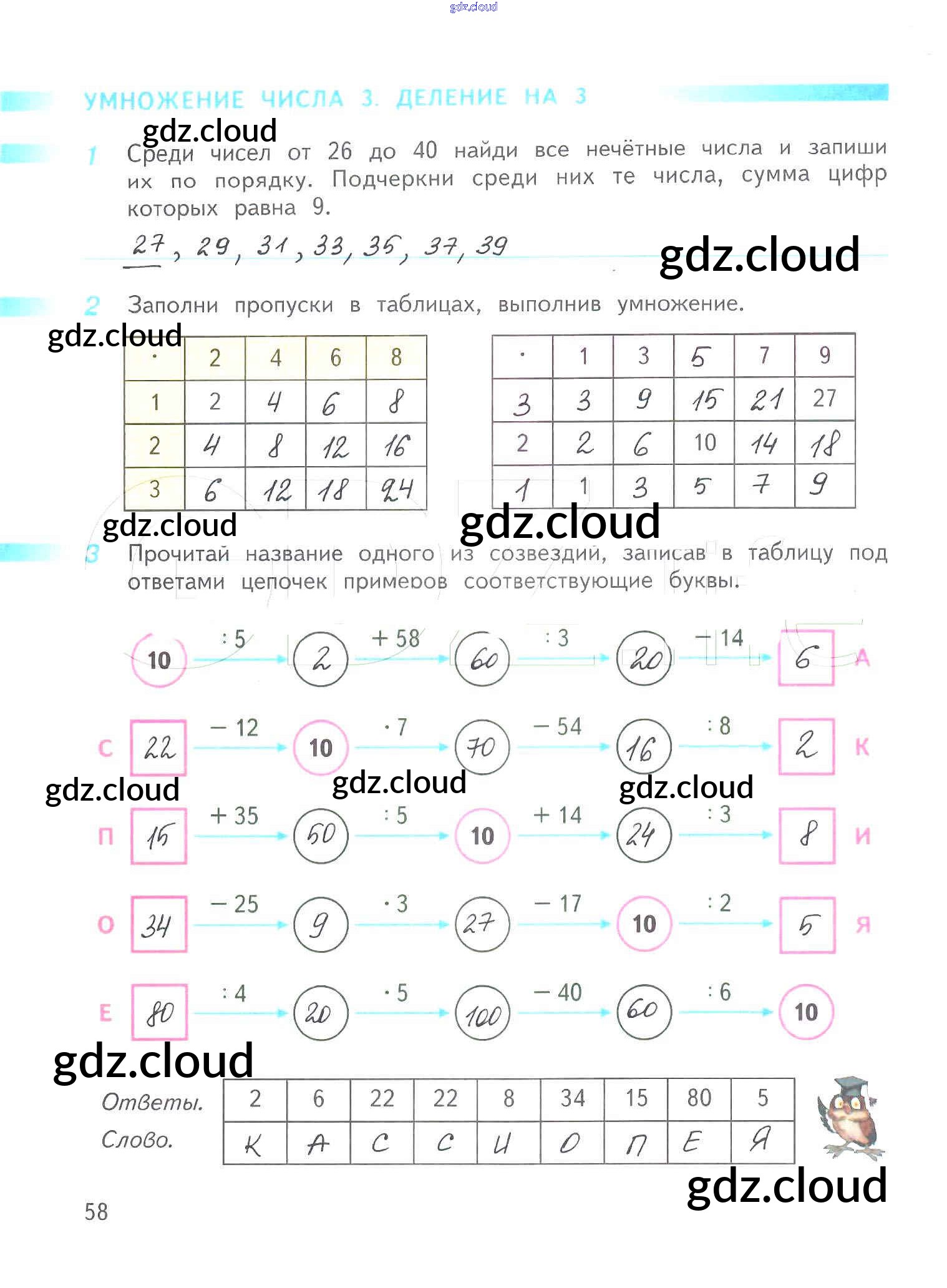 Ответ на задание 58 Рабочая тетрадь Математика за 3 (третий) класс Дорофеев, Миракова, Бука Перспектива 2017 Часть 1, 2