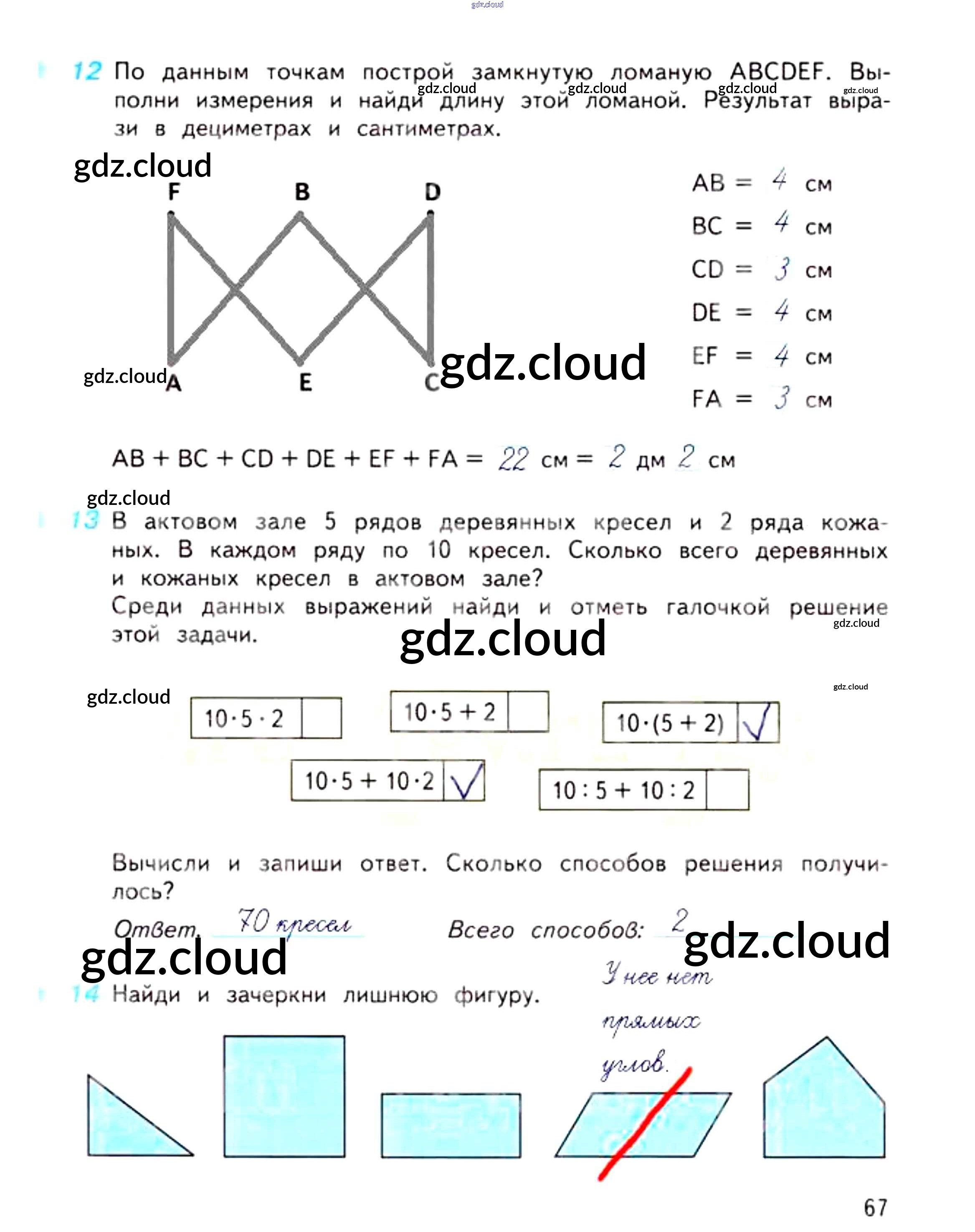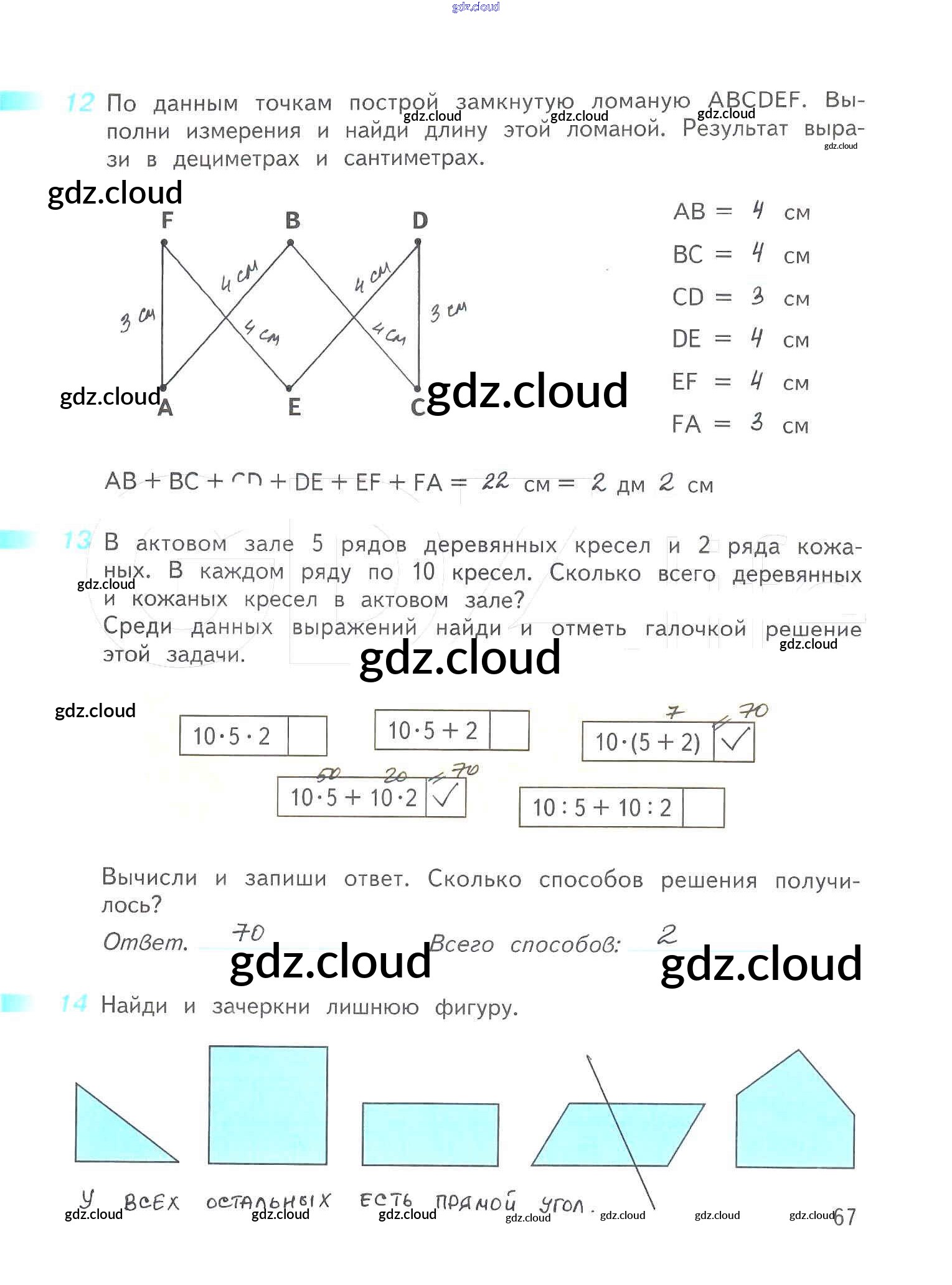 Ответ на задание 67 Рабочая тетрадь Математика за 3 (третий) класс Дорофеев, Миракова, Бука Перспектива 2017 Часть 1, 2