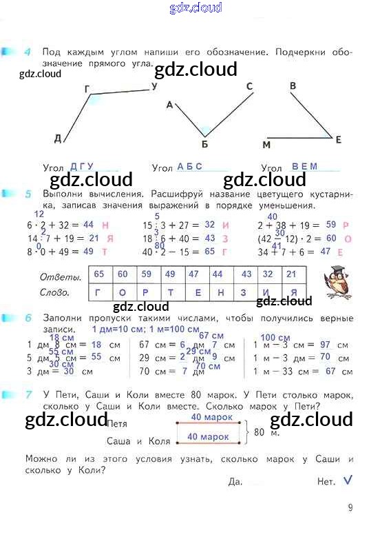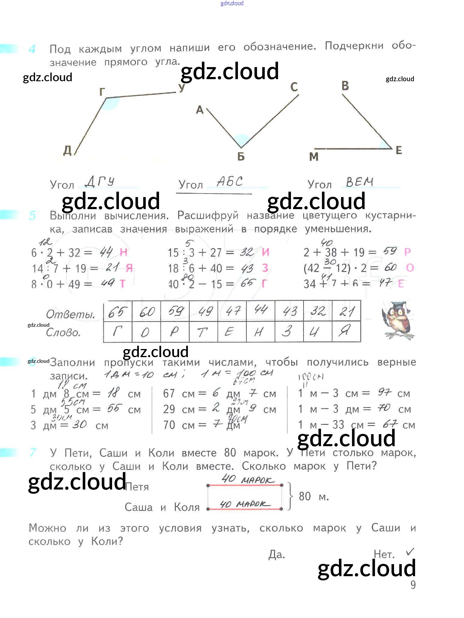 Ответ на задание 9 Рабочая тетрадь Математика за 3 (третий) класс Дорофеев, Миракова, Бука Перспектива 2017 Часть 1, 2