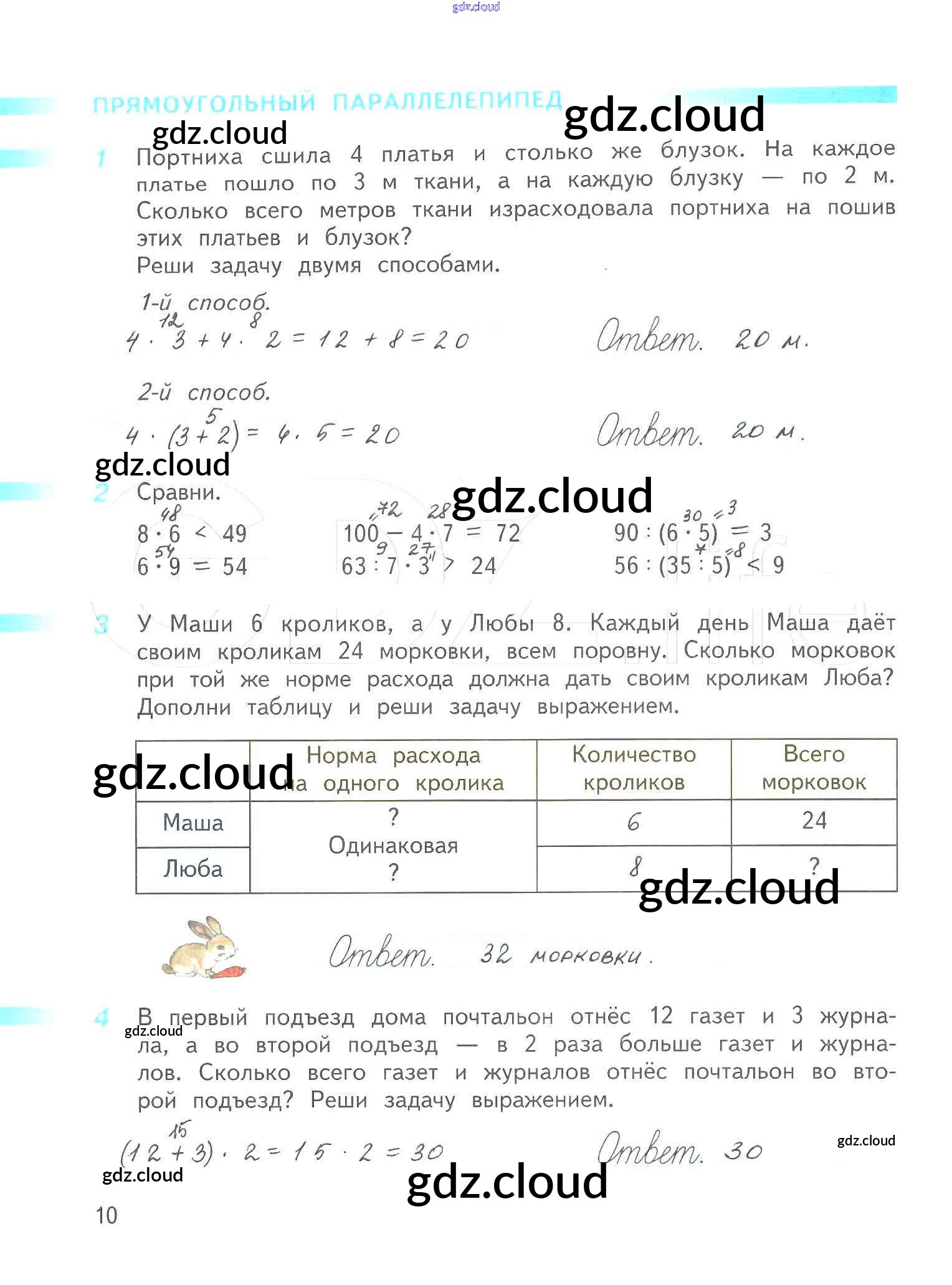 Ответ на задание 10 Рабочая тетрадь Математика за 3 (третий) класс Дорофеев, Миракова, Бука Перспектива 2017 Часть 1, 2