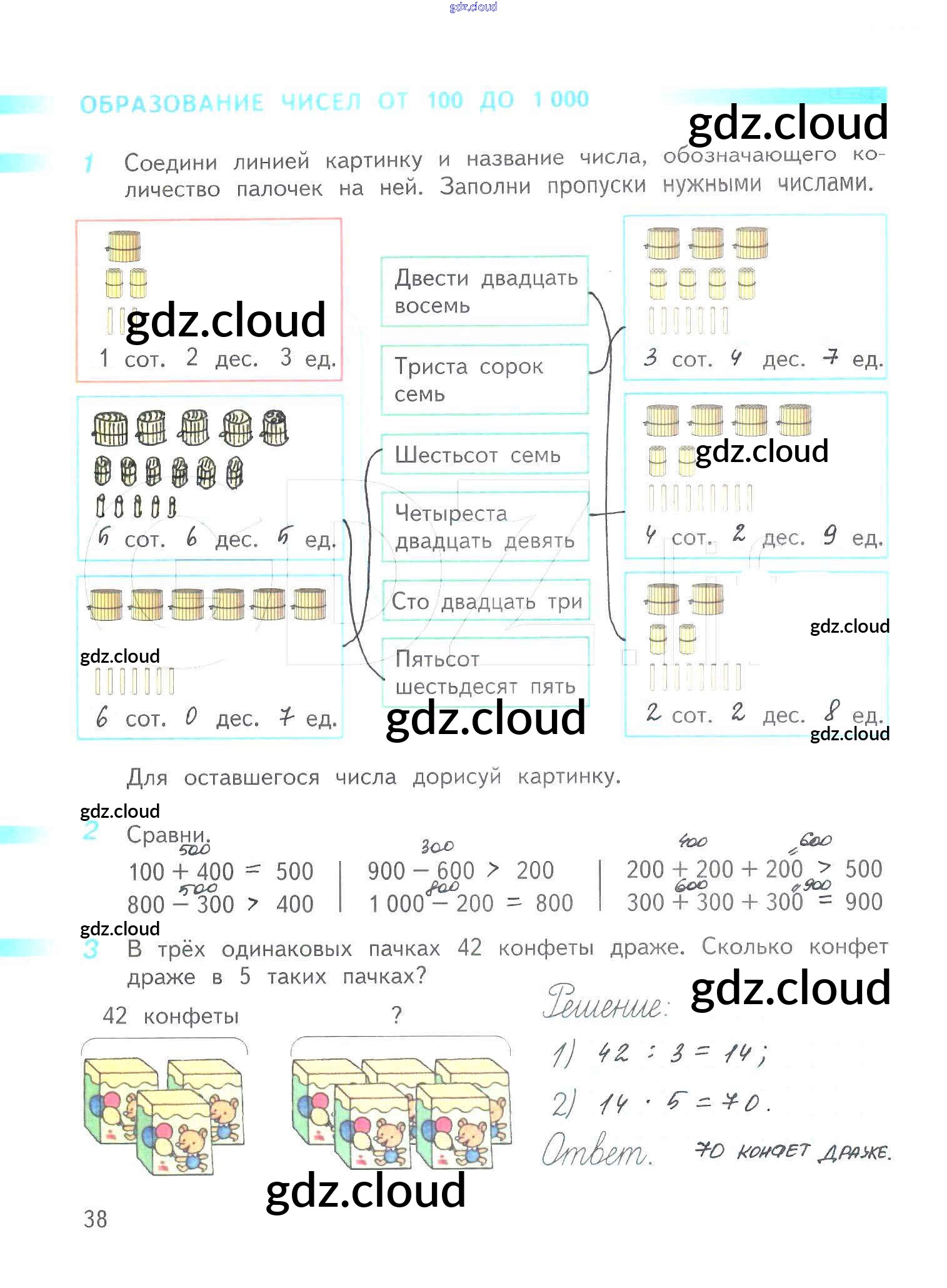 Ответ на задание 38 Рабочая тетрадь Математика за 3 (третий) класс Дорофеев, Миракова, Бука Перспектива 2017 Часть 1, 2