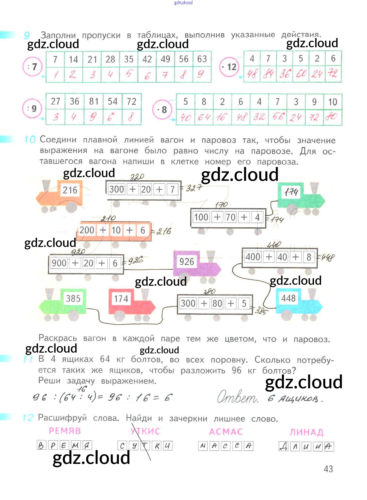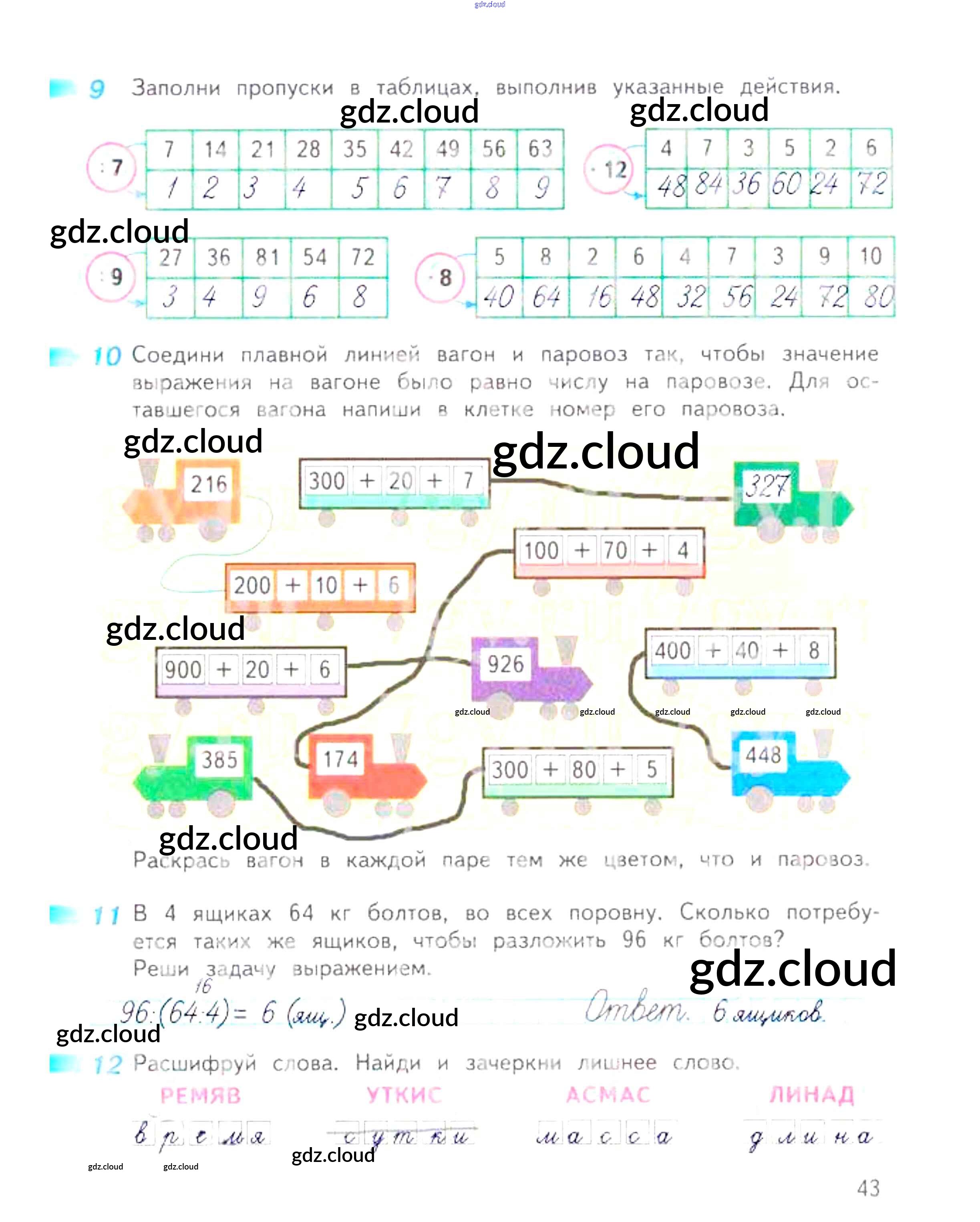 Ответ на задание 43 Рабочая тетрадь Математика за 3 (третий) класс Дорофеев, Миракова, Бука Перспектива 2017 Часть 1, 2