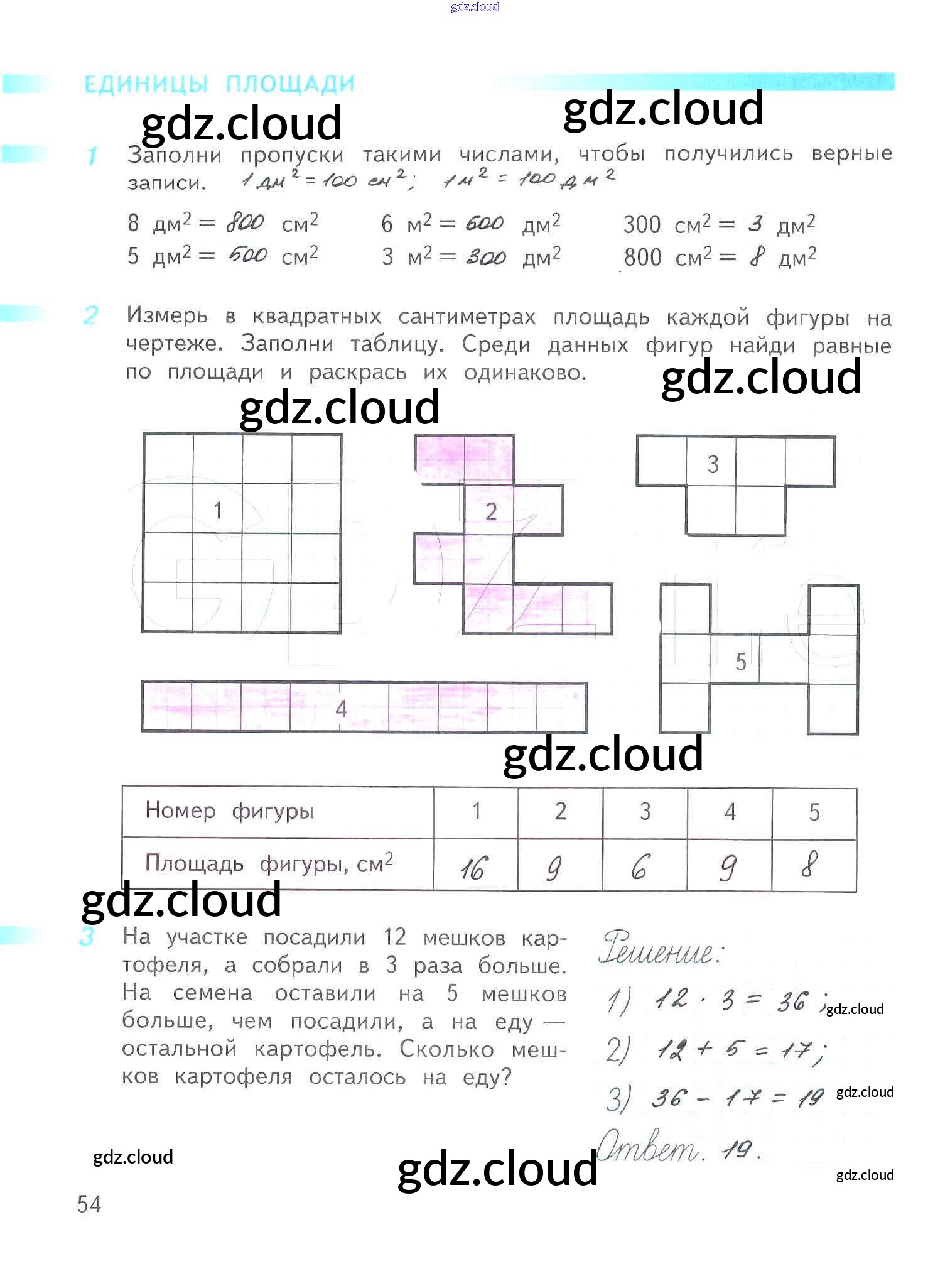 Ответ на задание 54 Рабочая тетрадь Математика за 3 (третий) класс Дорофеев, Миракова, Бука Перспектива 2017 Часть 1, 2