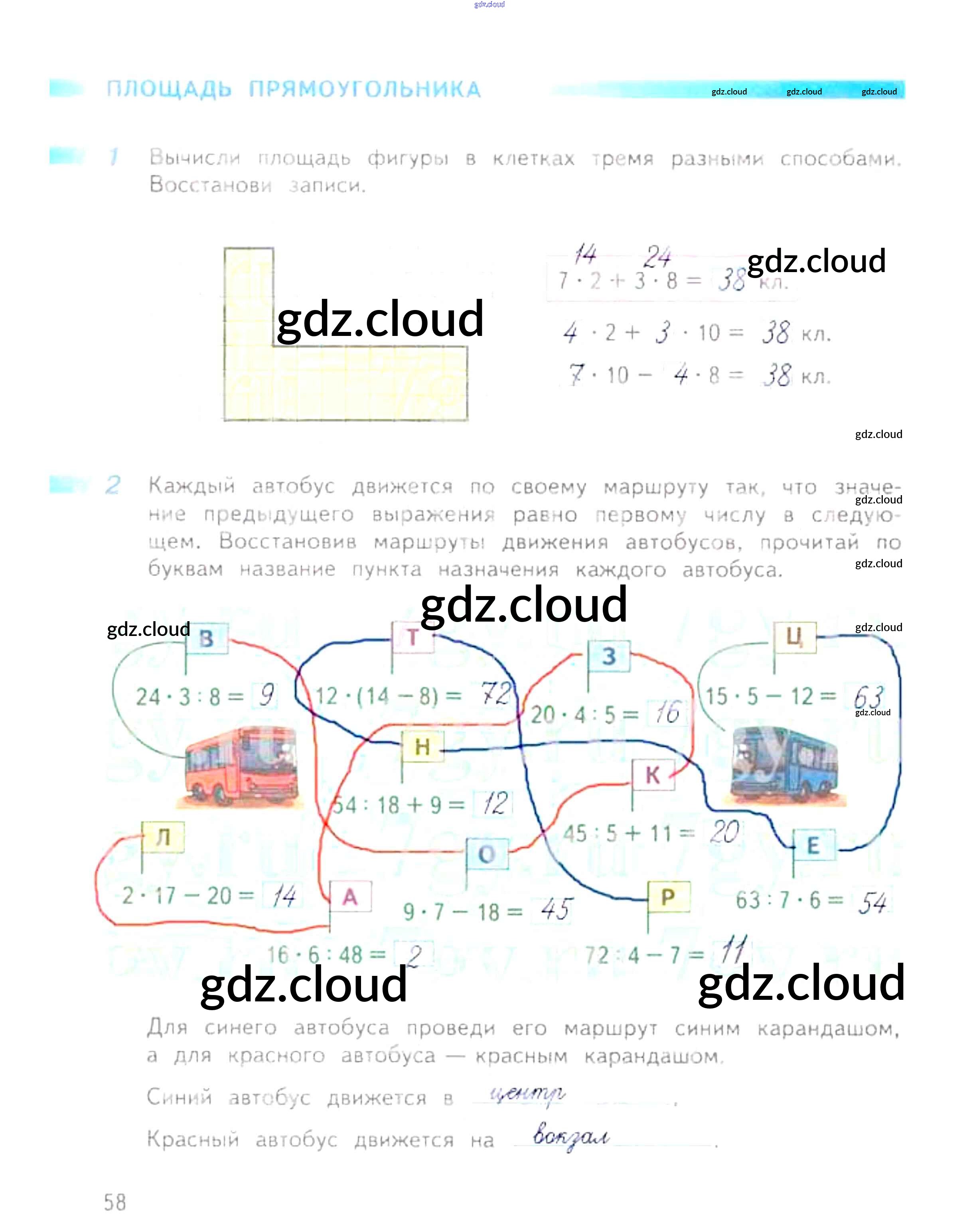 Ответ на задание 58 Рабочая тетрадь Математика за 3 (третий) класс Дорофеев, Миракова, Бука Перспектива 2017 Часть 1, 2