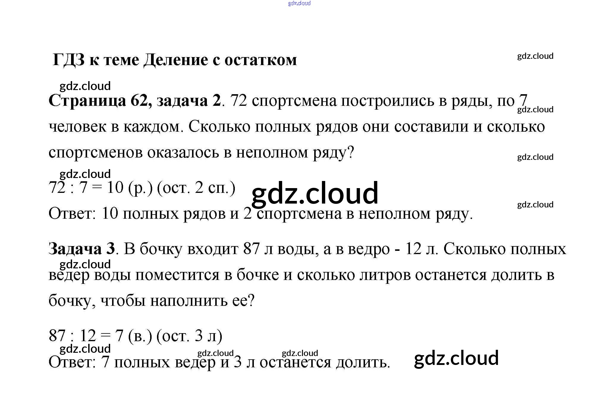 Ответ на задание 62 Рабочая тетрадь Математика за 3 (третий) класс Дорофеев, Миракова, Бука Перспектива 2017 Часть 1, 2