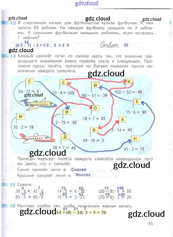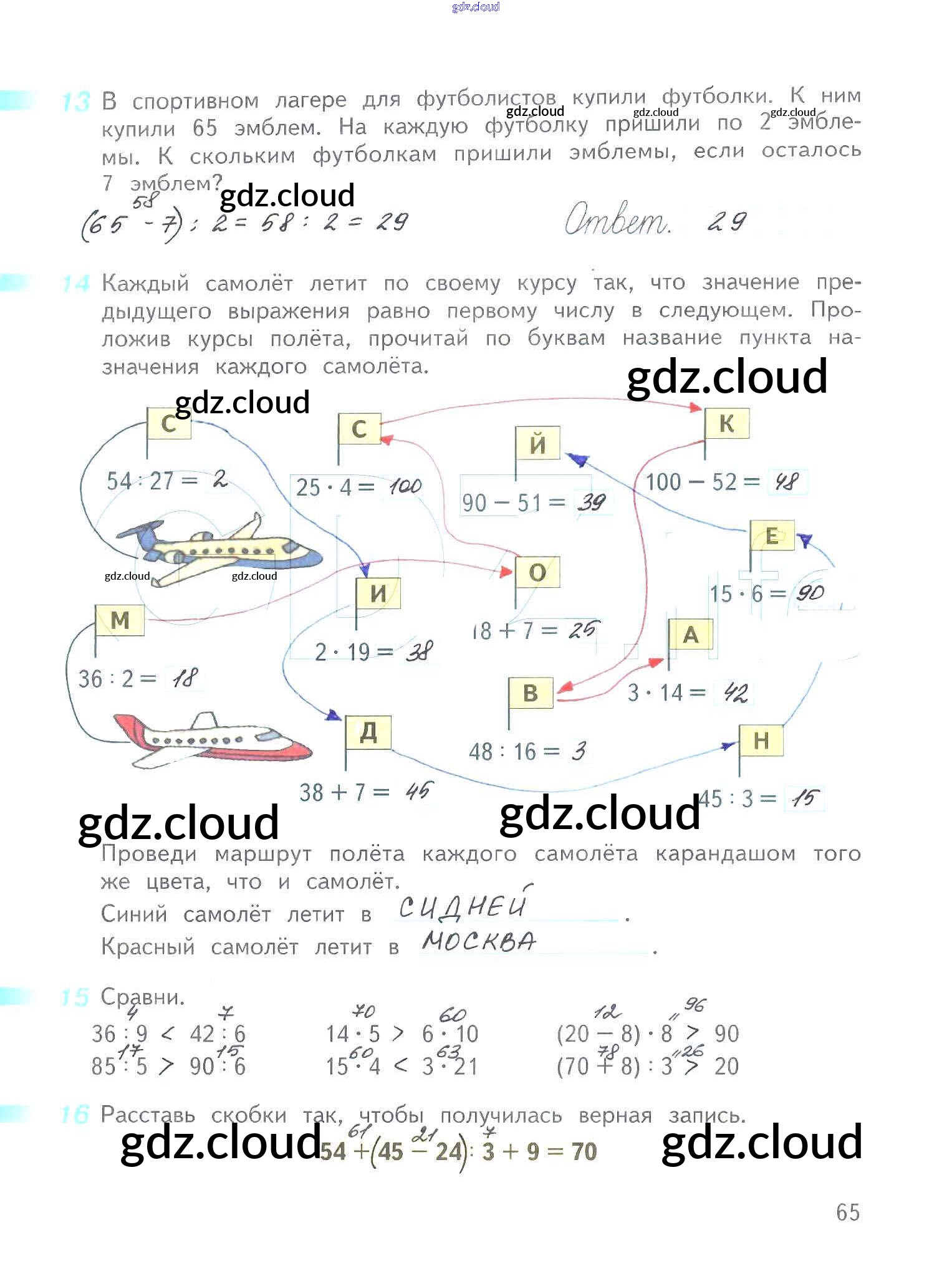 Ответ на задание 65 Рабочая тетрадь Математика за 3 (третий) класс Дорофеев, Миракова, Бука Перспектива 2017 Часть 1, 2