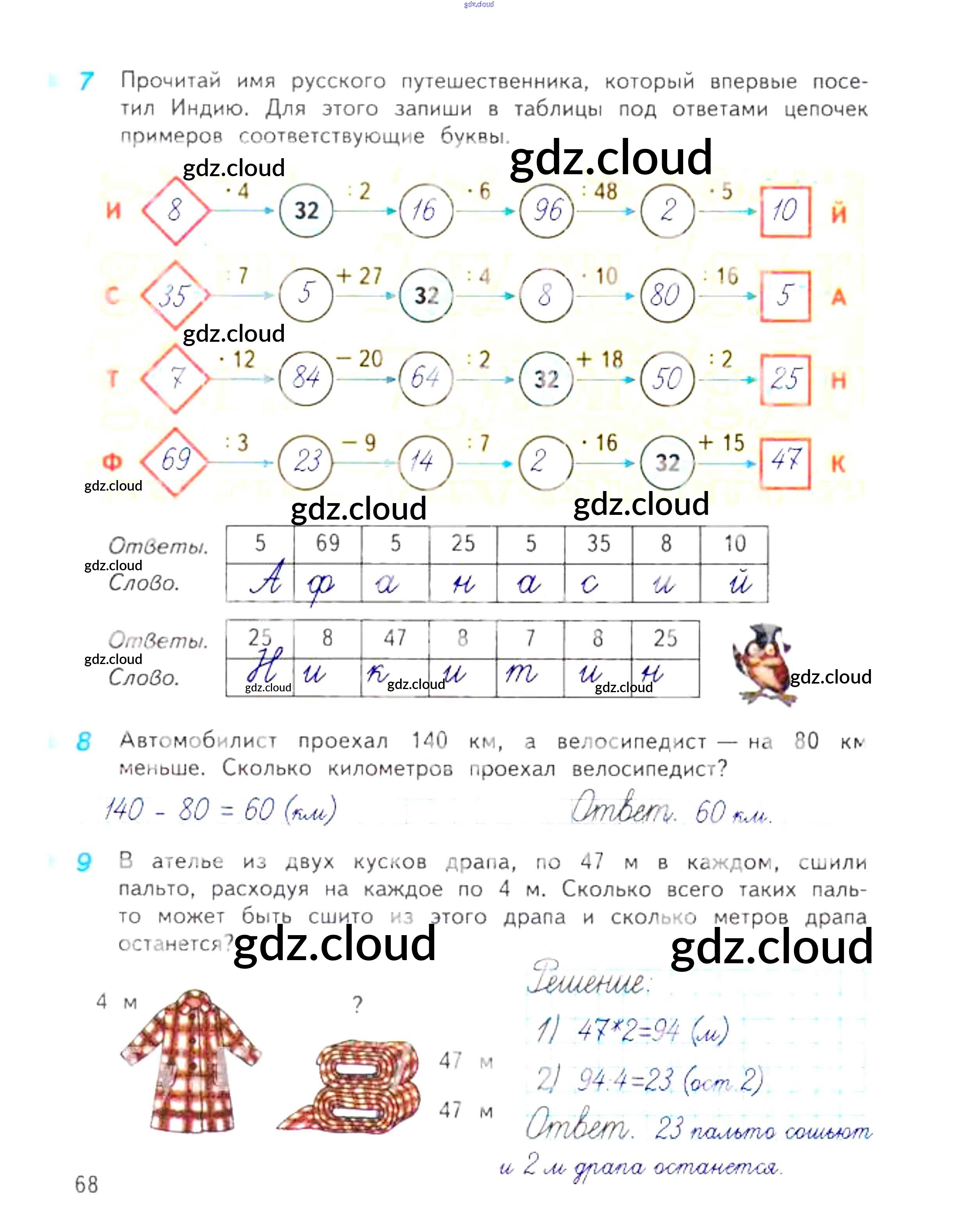 Ответ на задание 68 Рабочая тетрадь Математика за 3 (третий) класс Дорофеев, Миракова, Бука Перспектива 2017 Часть 1, 2