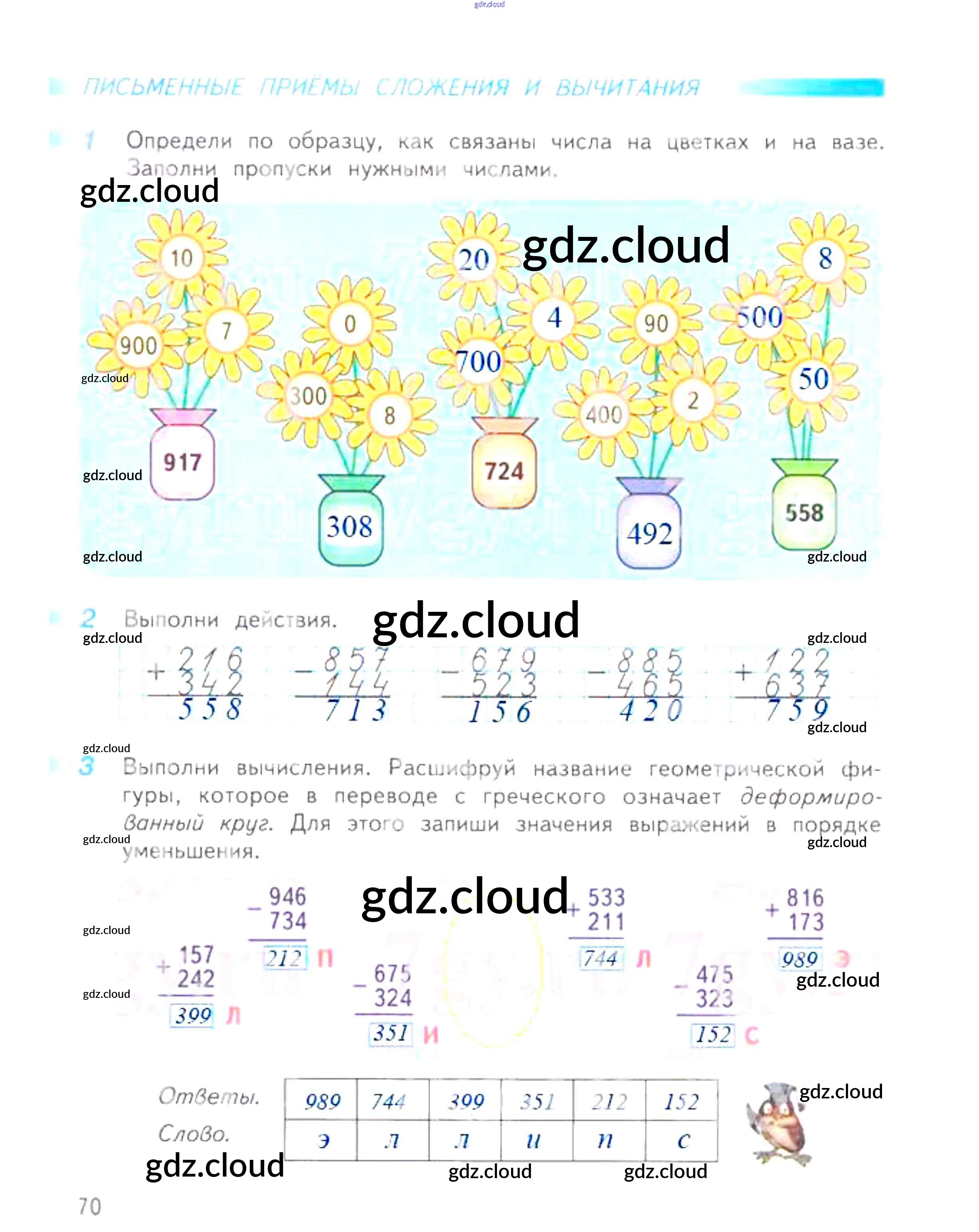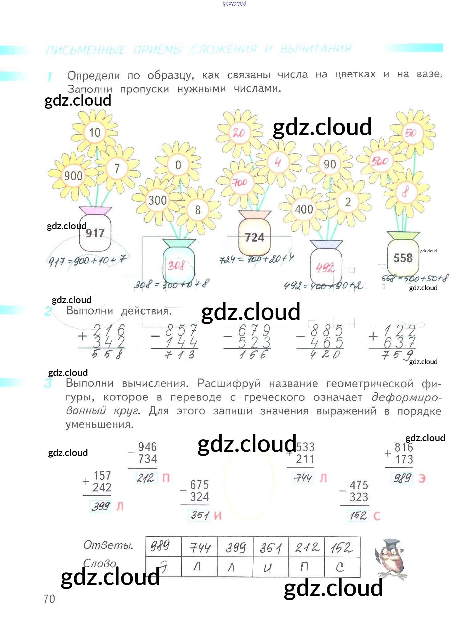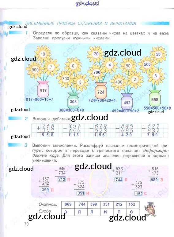 Ответ на задание 70 Рабочая тетрадь Математика за 3 (третий) класс Дорофеев, Миракова, Бука Перспектива 2017 Часть 1, 2