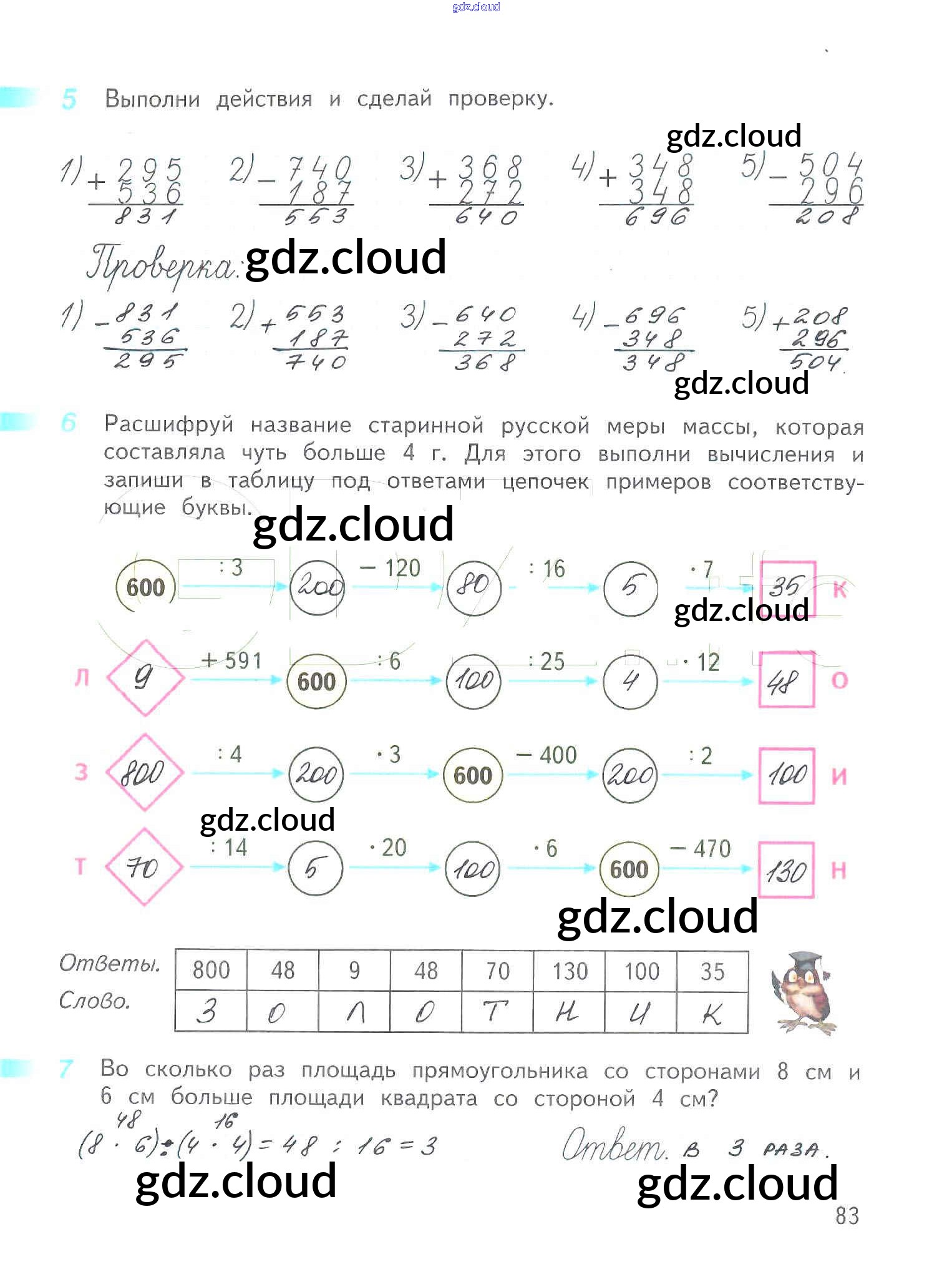 Ответ на задание 83 Рабочая тетрадь Математика за 3 (третий) класс Дорофеев, Миракова, Бука Перспектива 2017 Часть 1, 2