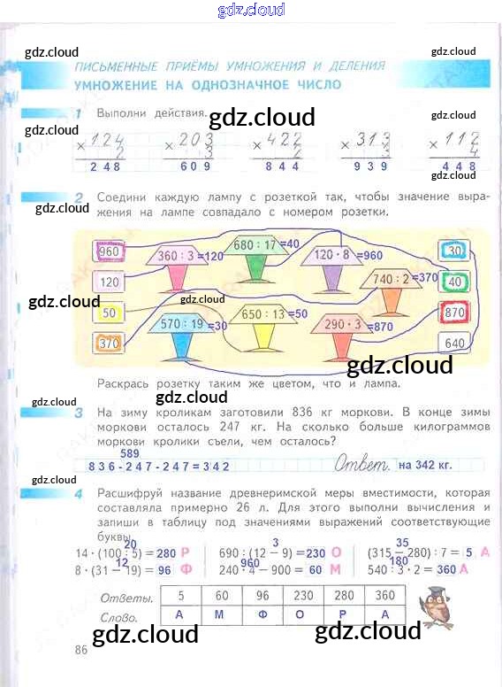 Ответ на задание 86 Рабочая тетрадь Математика за 3 (третий) класс Дорофеев, Миракова, Бука Перспектива 2017 Часть 1, 2