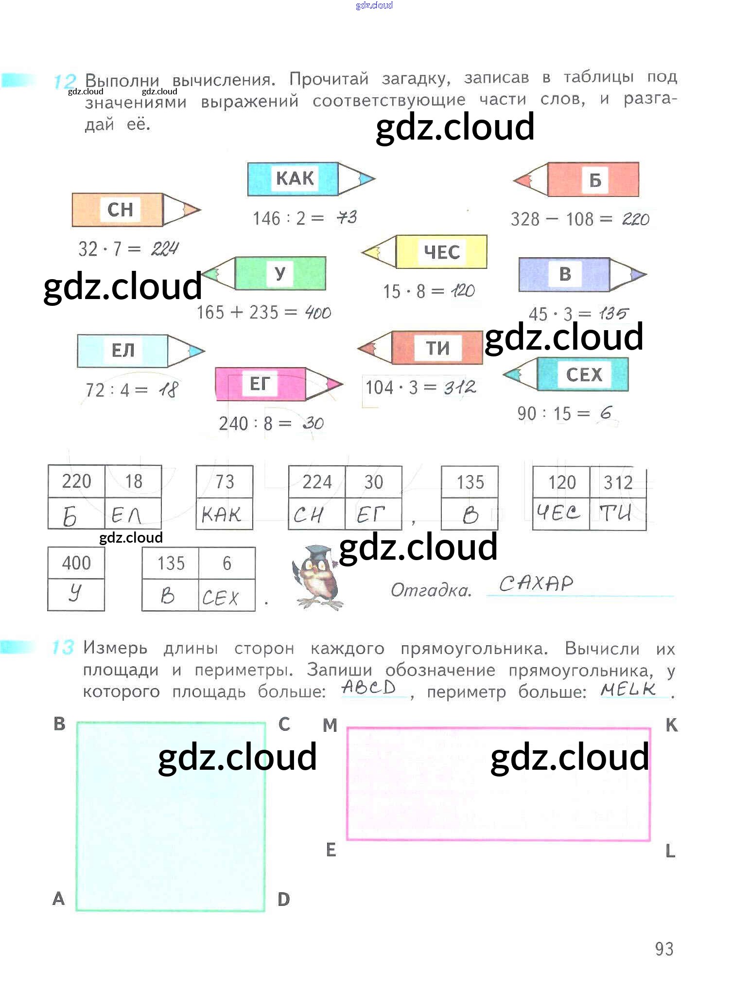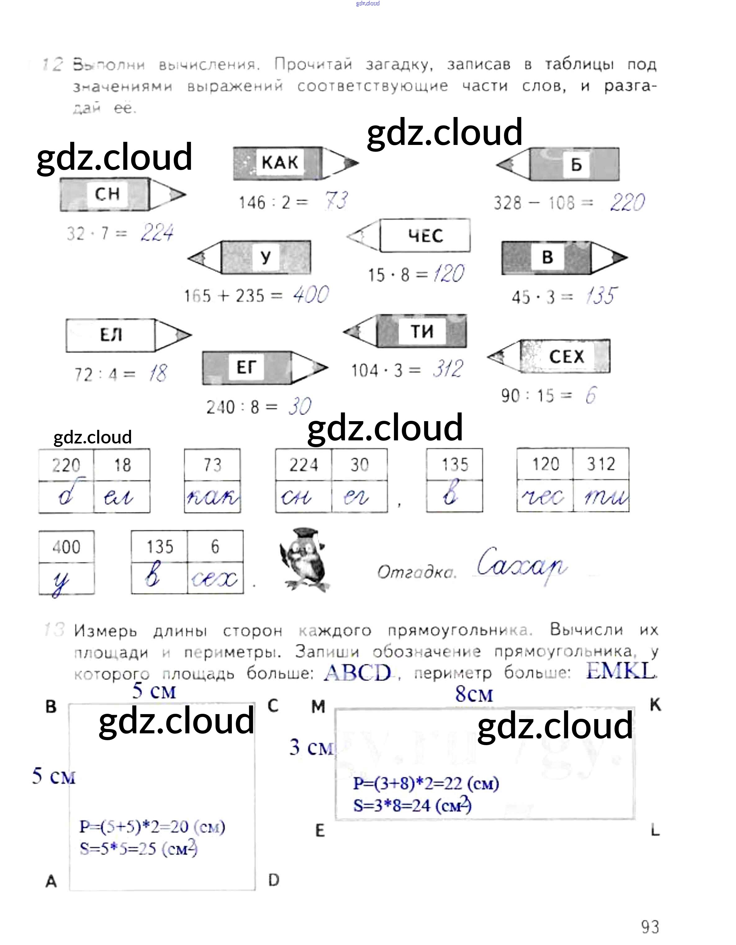 Ответ на задание 93 Рабочая тетрадь Математика за 3 (третий) класс Дорофеев, Миракова, Бука Перспектива 2017 Часть 1, 2