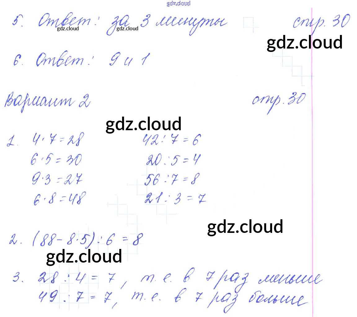 Ответ на задание 30 Контрольные работы Математика за 3 (третий) класс Рудницкая УМК 2017 Часть 1, 2 ФГОС онлайн и без номера телефона.
