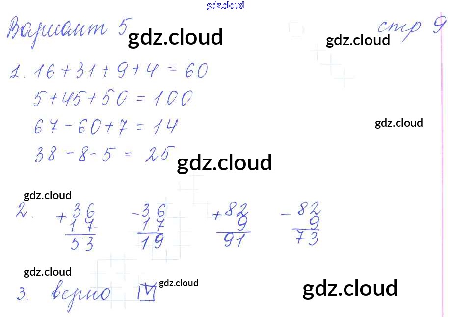 Ответ на задание 9 Контрольные работы Математика за 3 (третий) класс Рудницкая УМК 2017 Часть 1, 2 ФГОС онлайн и без номера телефона.
