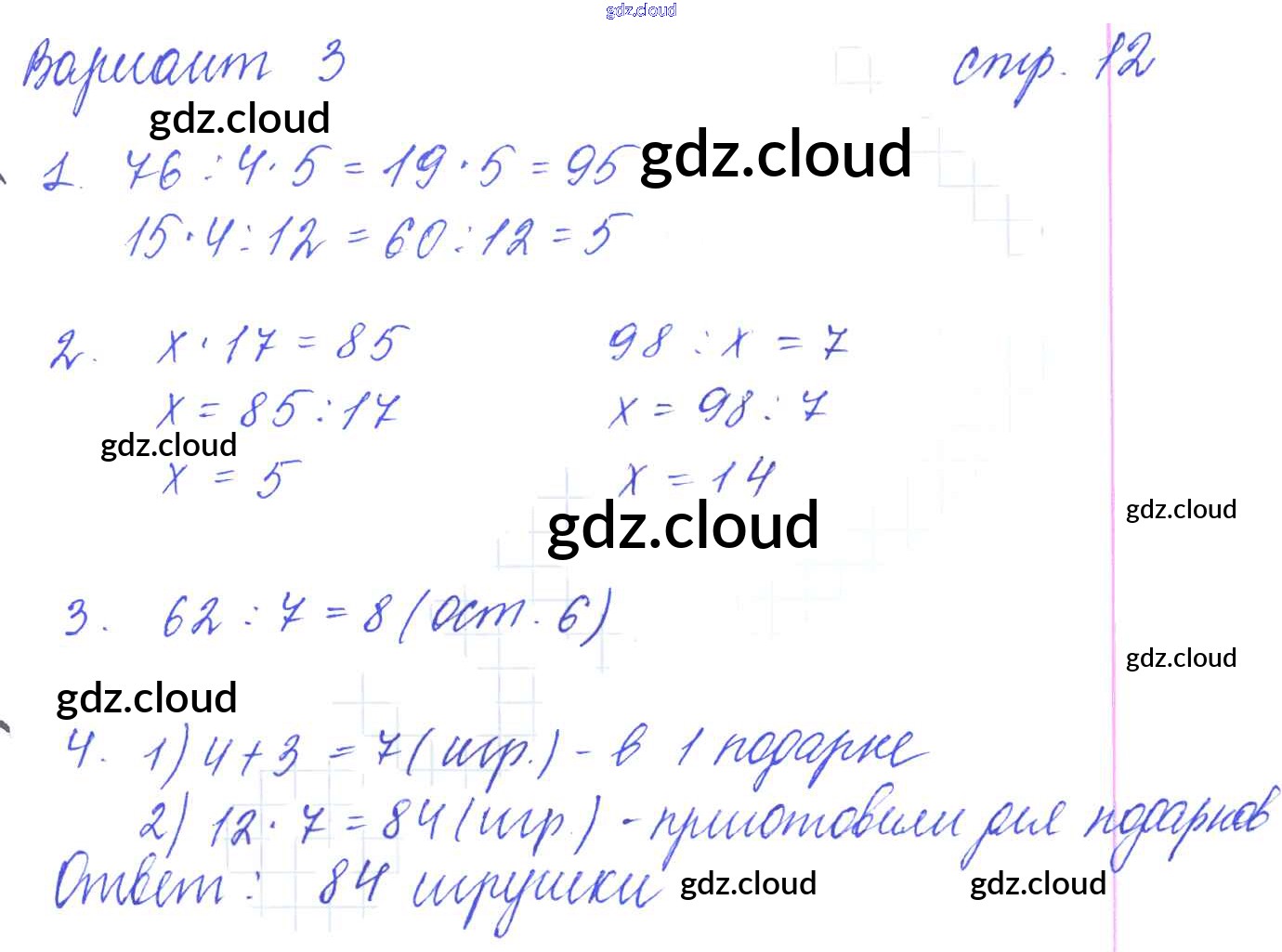 Ответ на задание 12 Контрольные работы Математика за 3 (третий) класс Рудницкая УМК 2017 Часть 1, 2 ФГОС онлайн и без номера телефона.