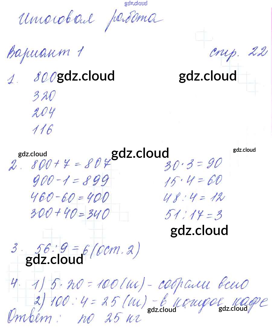 Ответ на задание 22 Контрольные работы Математика за 3 (третий) класс Рудницкая УМК 2017 Часть 1, 2 ФГОС онлайн и без номера телефона.