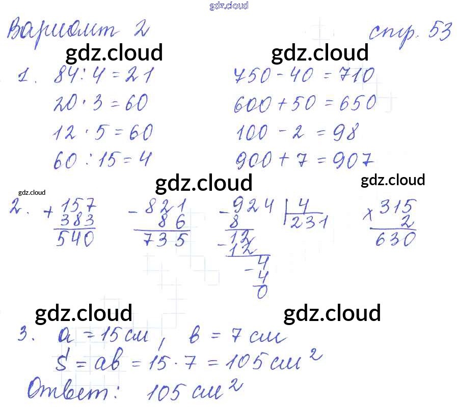 Ответ на задание 53 Контрольные работы Математика за 3 (третий) класс Рудницкая УМК 2017 Часть 1, 2 ФГОС онлайн и без номера телефона.