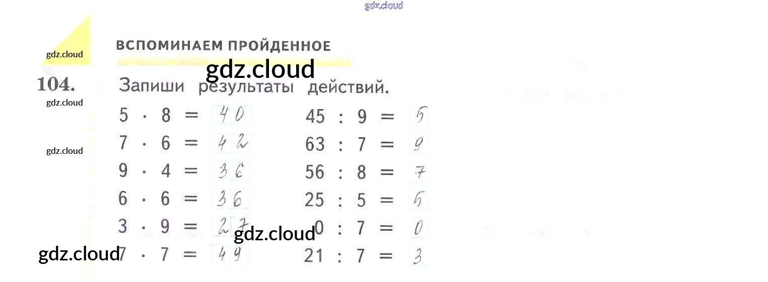 Ответ на задание 104 Рабочая тетрадь Математика за 3 (третий) класс Рудницкая, Юдачева Начальная школа XXI века 2017 Часть 1, 2