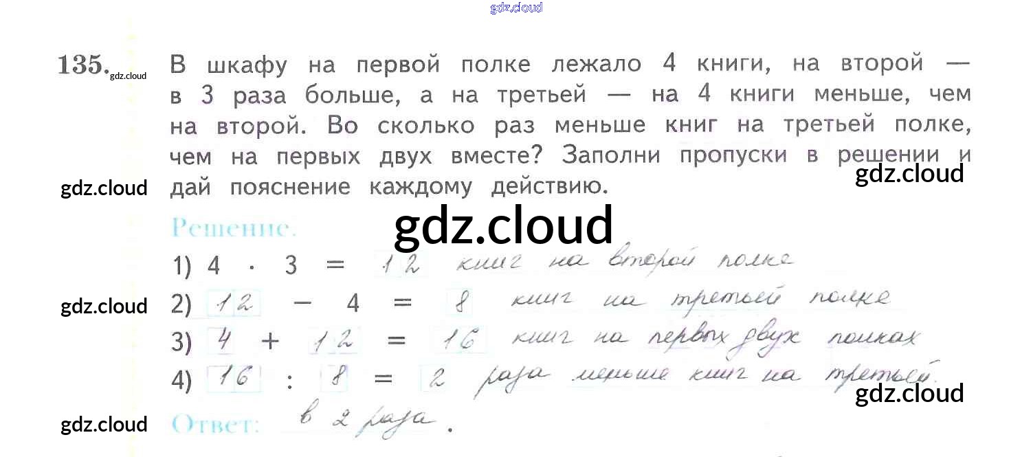 Ответ на задание 135 Рабочая тетрадь Математика за 3 (третий) класс Рудницкая, Юдачева Начальная школа XXI века 2017 Часть 1, 2