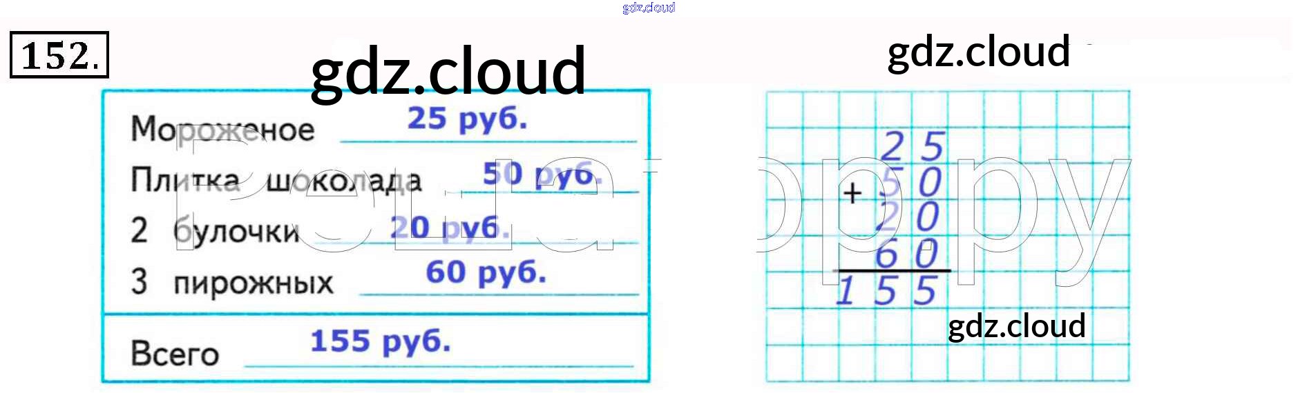 Ответ на задание 152 Рабочая тетрадь Математика за 3 (третий) класс Рудницкая, Юдачева Начальная школа XXI века 2017 Часть 1, 2