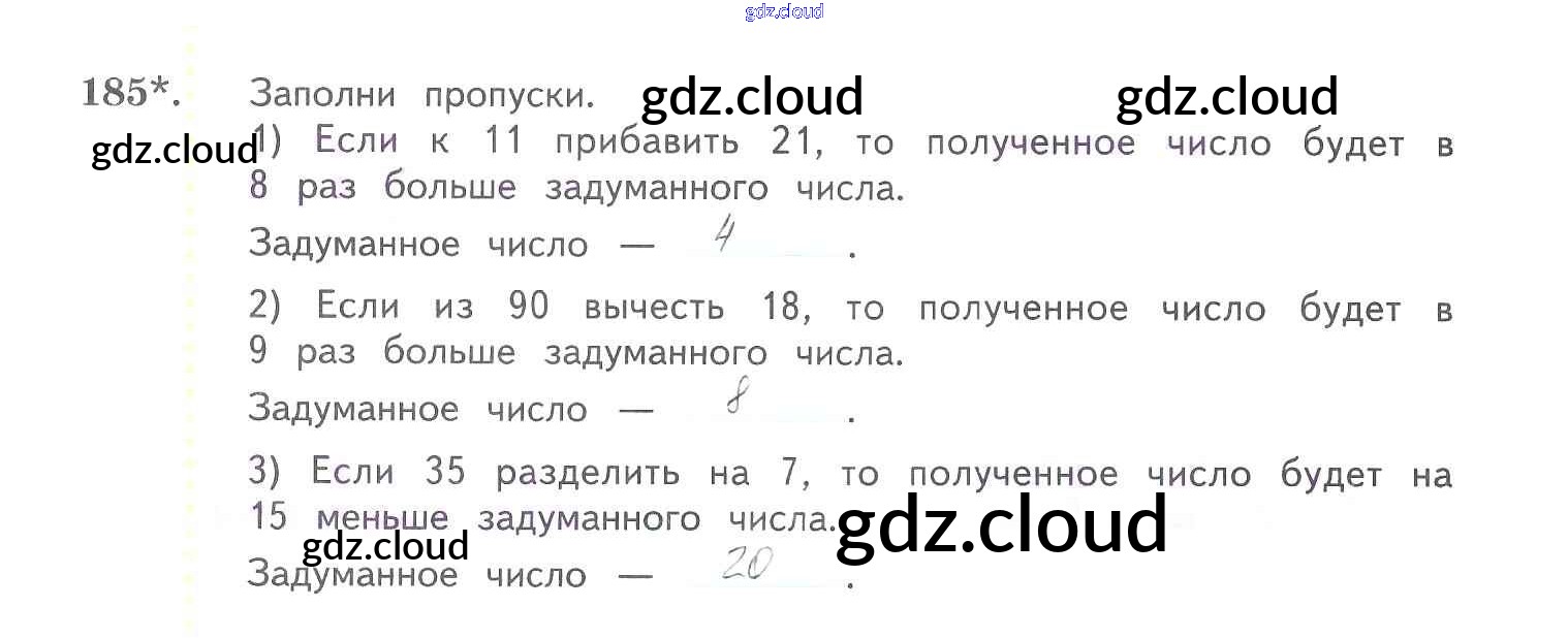 Ответ на задание 185 Рабочая тетрадь Математика за 3 (третий) класс Рудницкая, Юдачева Начальная школа XXI века 2017 Часть 1, 2