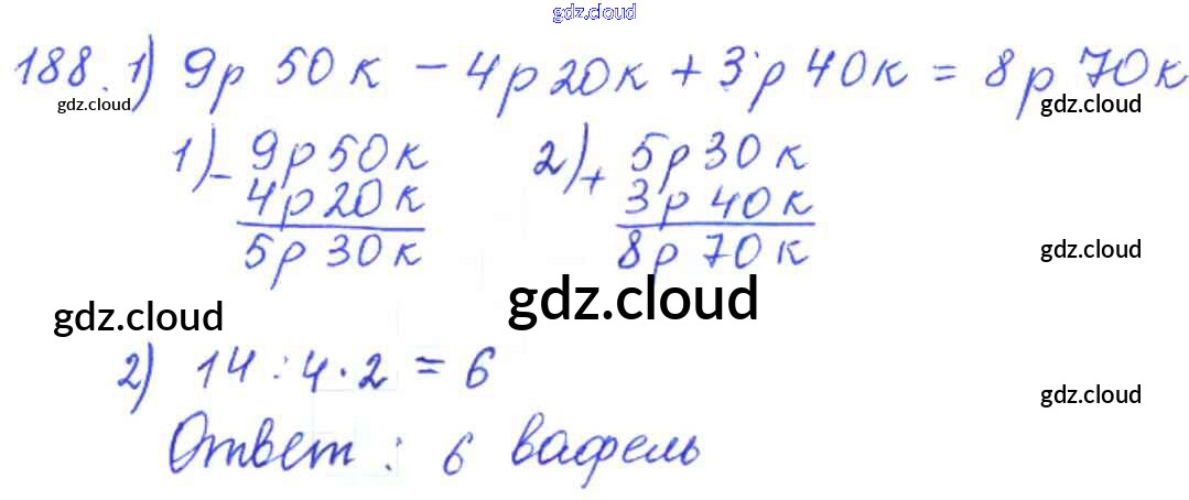 Ответ на задание 188 Рабочая тетрадь Математика за 3 (третий) класс Рудницкая, Юдачева Начальная школа XXI века 2017 Часть 1, 2