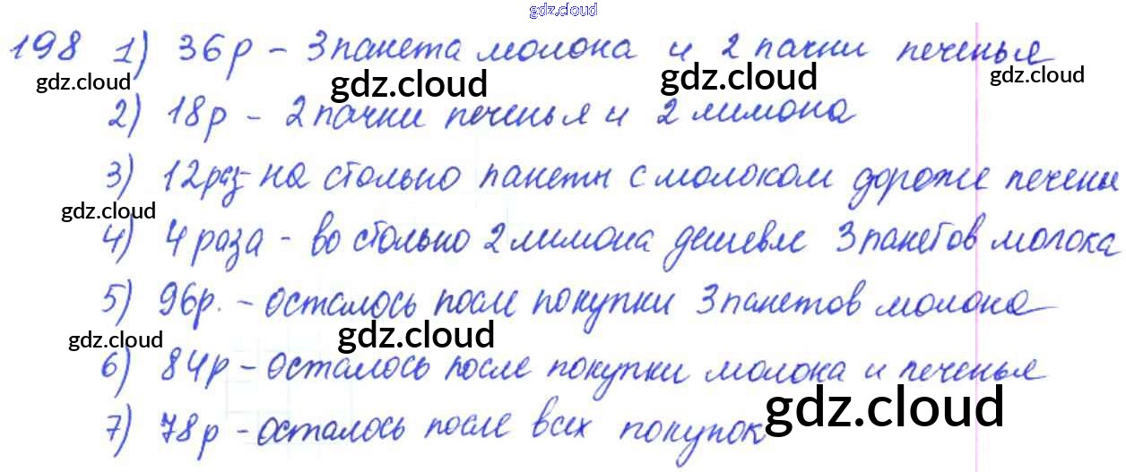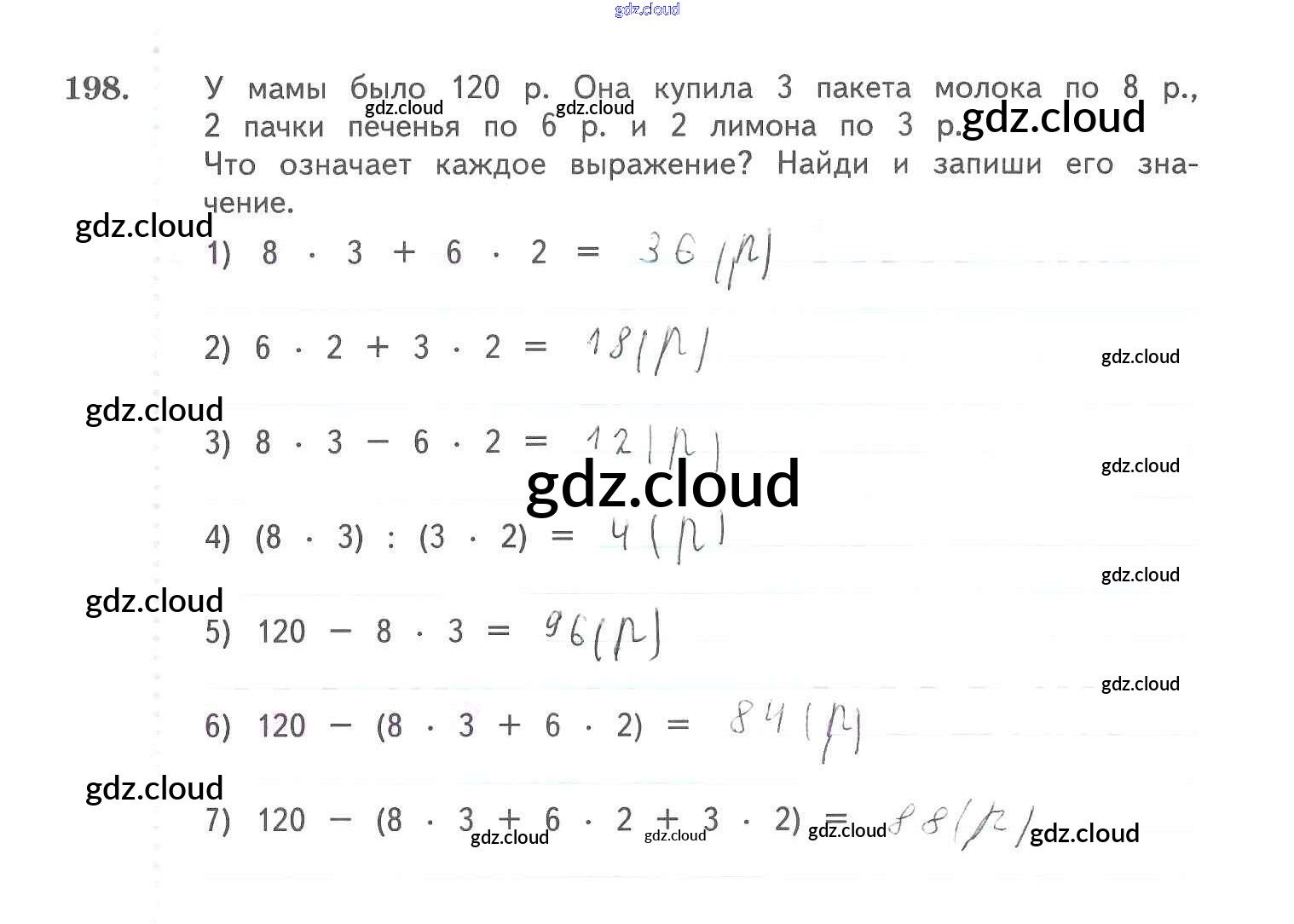 Ответ на задание 198 Рабочая тетрадь Математика за 3 (третий) класс Рудницкая, Юдачева Начальная школа XXI века 2017 Часть 1, 2