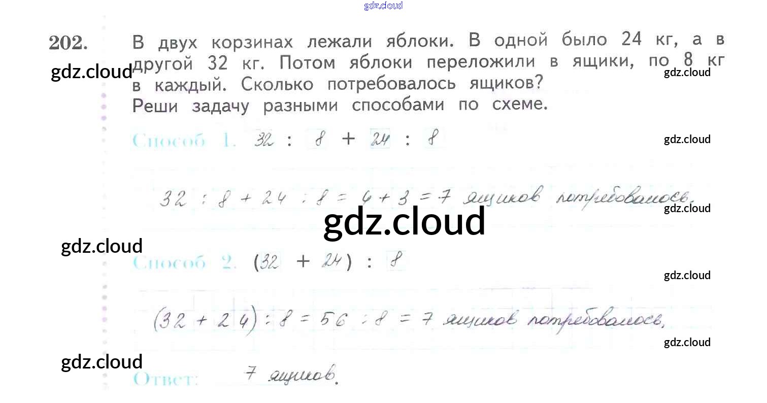 Ответ на задание 202 Рабочая тетрадь Математика за 3 (третий) класс Рудницкая, Юдачева Начальная школа XXI века 2017 Часть 1, 2