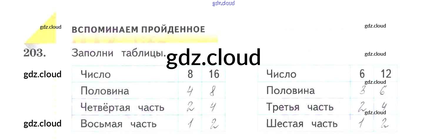 Ответ на задание 203 Рабочая тетрадь Математика за 3 (третий) класс Рудницкая, Юдачева Начальная школа XXI века 2017 Часть 1, 2