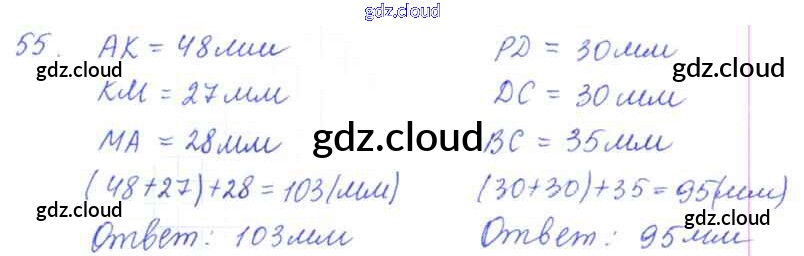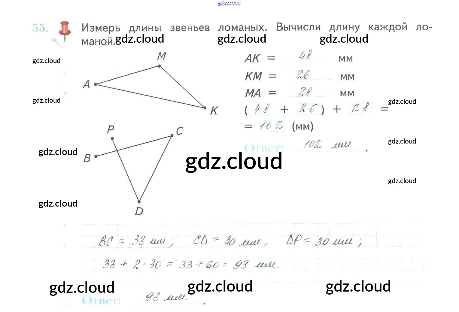 Ответ на задание 55 Рабочая тетрадь Математика за 3 (третий) класс Рудницкая, Юдачева Начальная школа XXI века 2017 Часть 1, 2