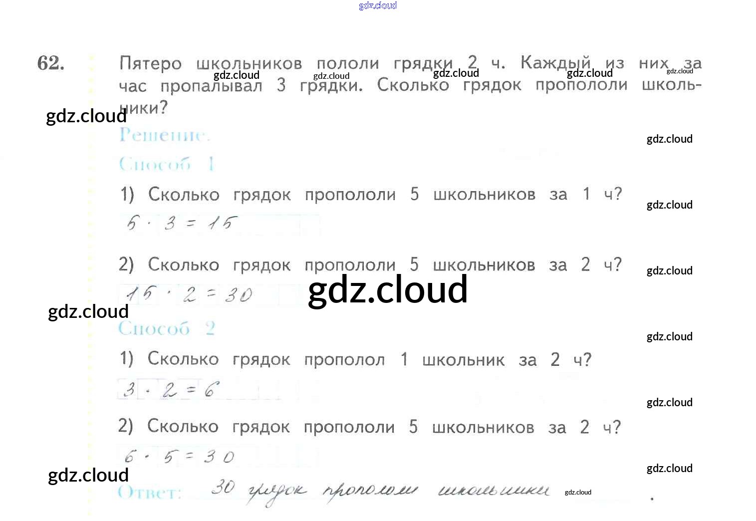 Ответ на задание 62 Рабочая тетрадь Математика за 3 (третий) класс Рудницкая, Юдачева Начальная школа XXI века 2017 Часть 1, 2