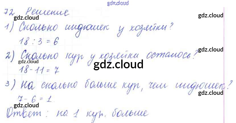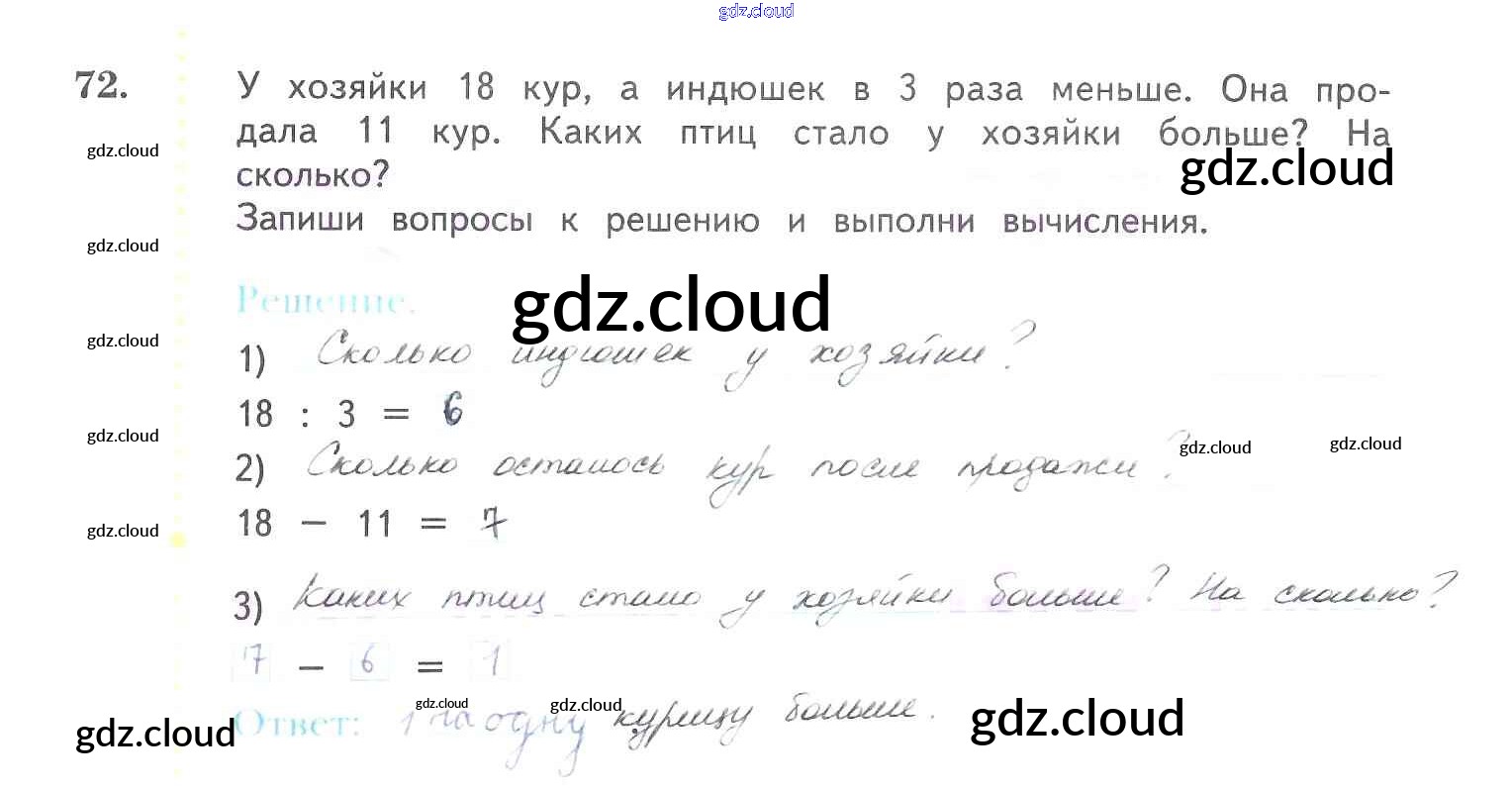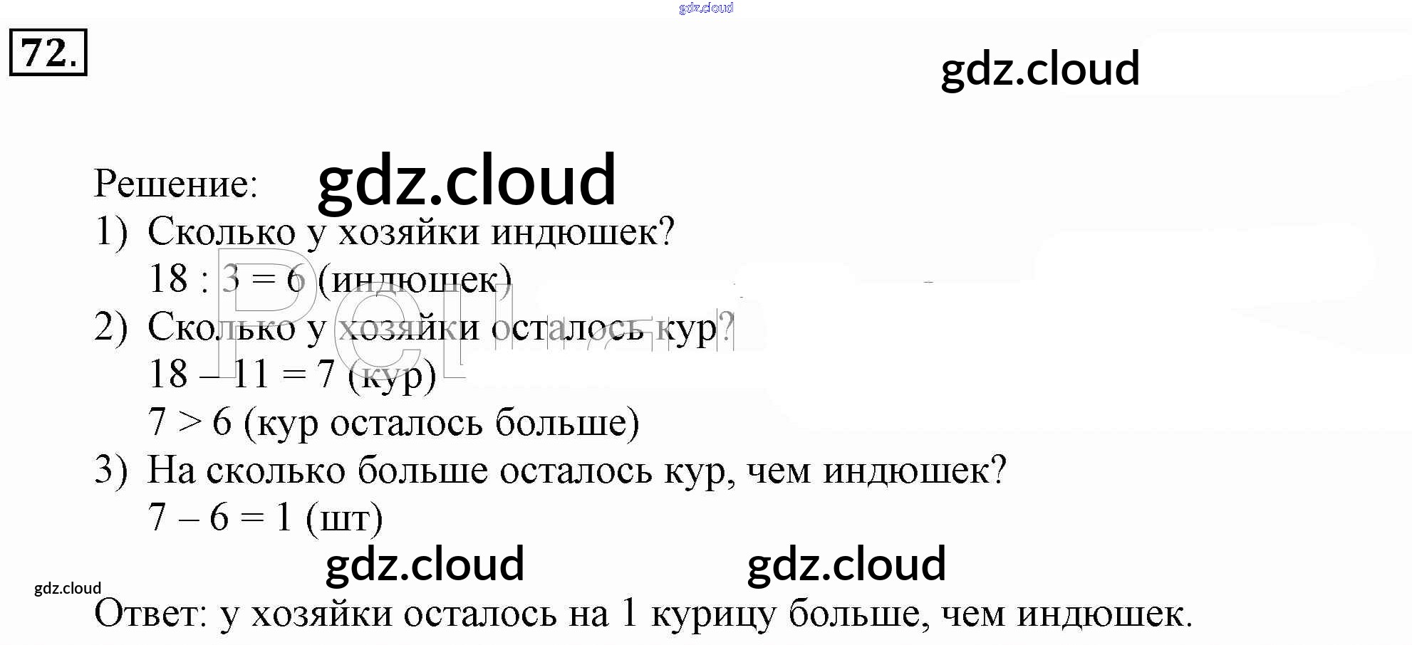 Ответ на задание 72 Рабочая тетрадь Математика за 3 (третий) класс Рудницкая, Юдачева Начальная школа XXI века 2017 Часть 1, 2