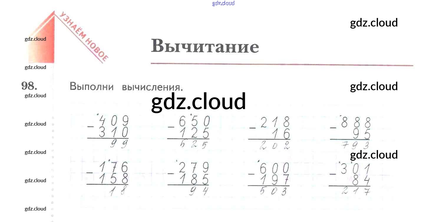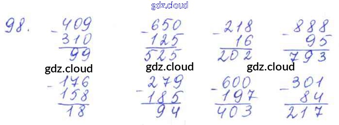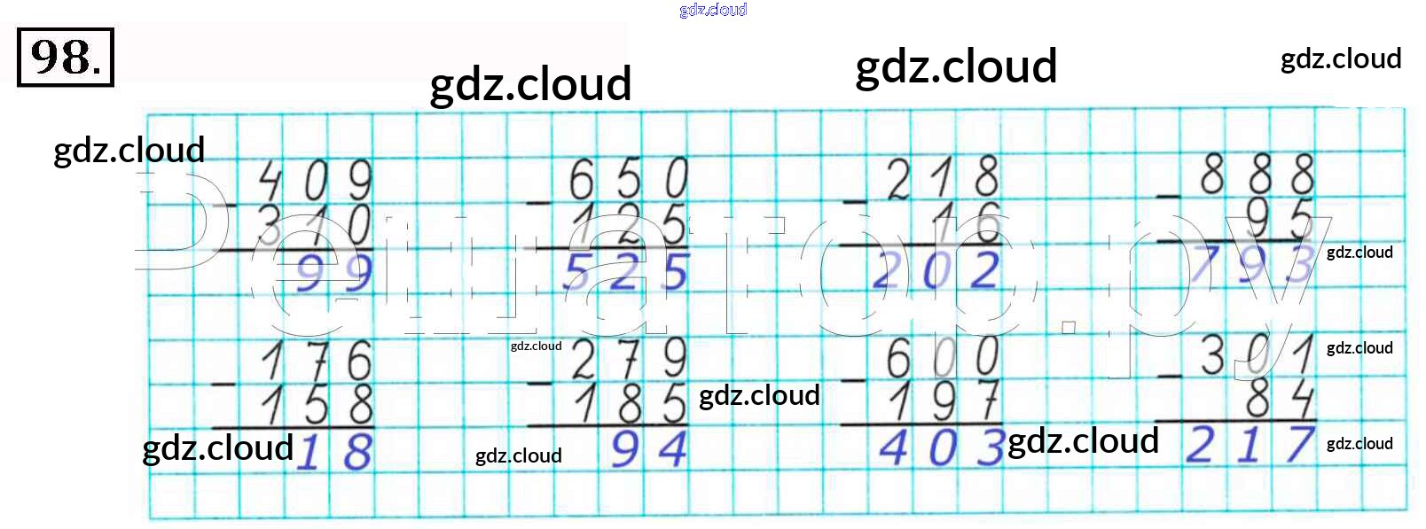 Ответ на задание 98 Рабочая тетрадь Математика за 3 (третий) класс Рудницкая, Юдачева Начальная школа XXI века 2017 Часть 1, 2