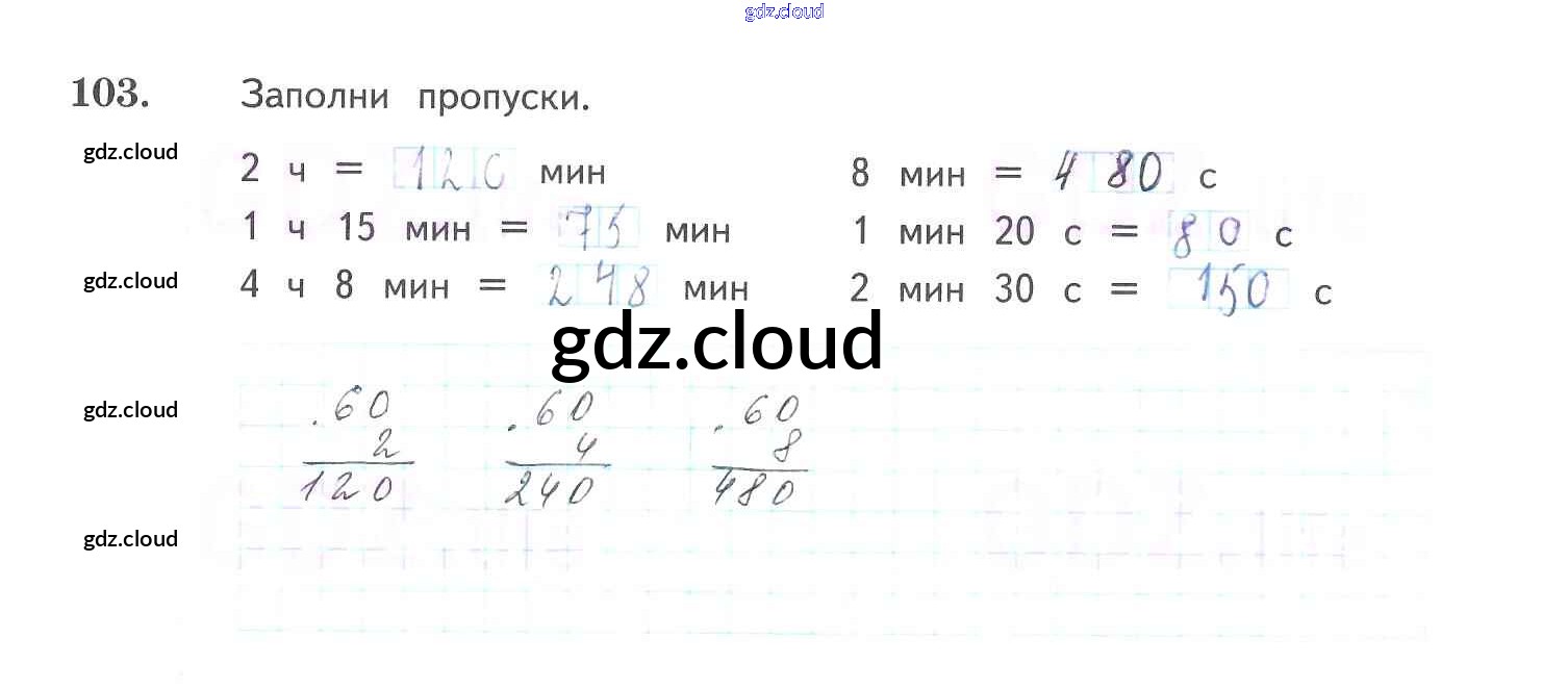 Ответ на задание 103 Рабочая тетрадь Математика за 3 (третий) класс Рудницкая, Юдачева Начальная школа XXI века 2017 Часть 1, 2