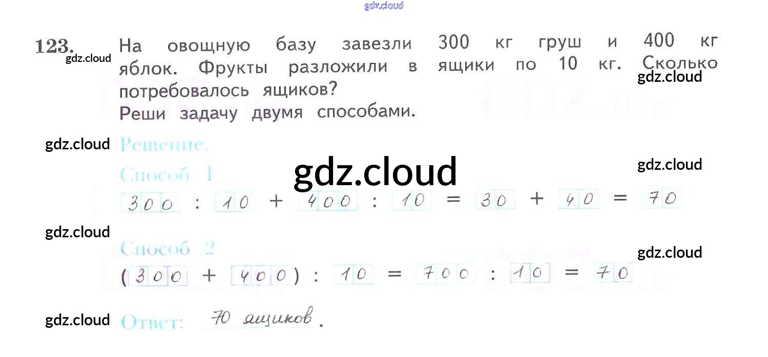 Ответ на задание 123 Рабочая тетрадь Математика за 3 (третий) класс Рудницкая, Юдачева Начальная школа XXI века 2017 Часть 1, 2