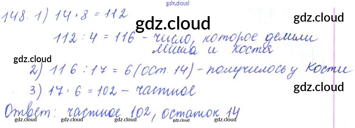 Ответ на задание 148 Рабочая тетрадь Математика за 3 (третий) класс Рудницкая, Юдачева Начальная школа XXI века 2017 Часть 1, 2