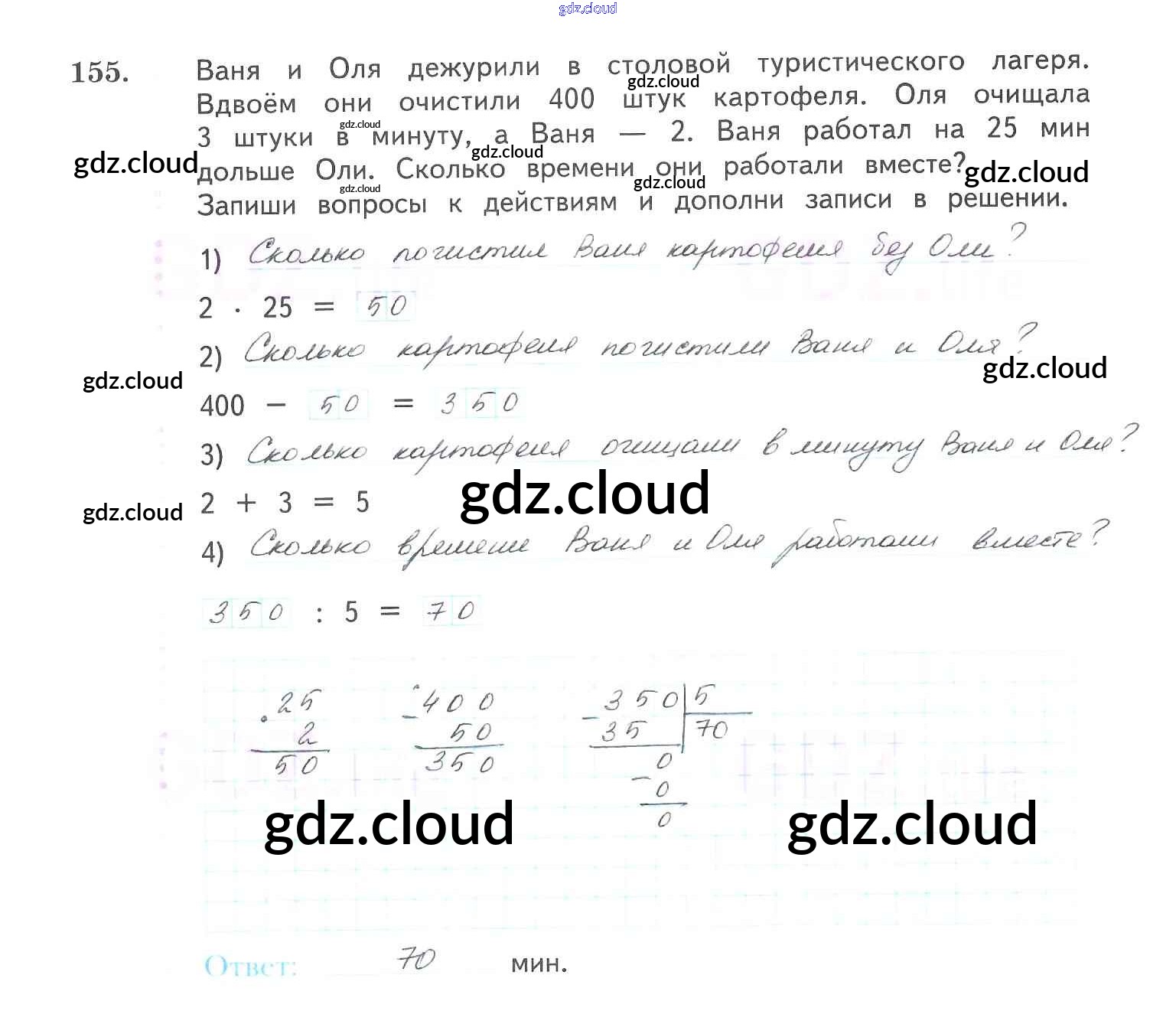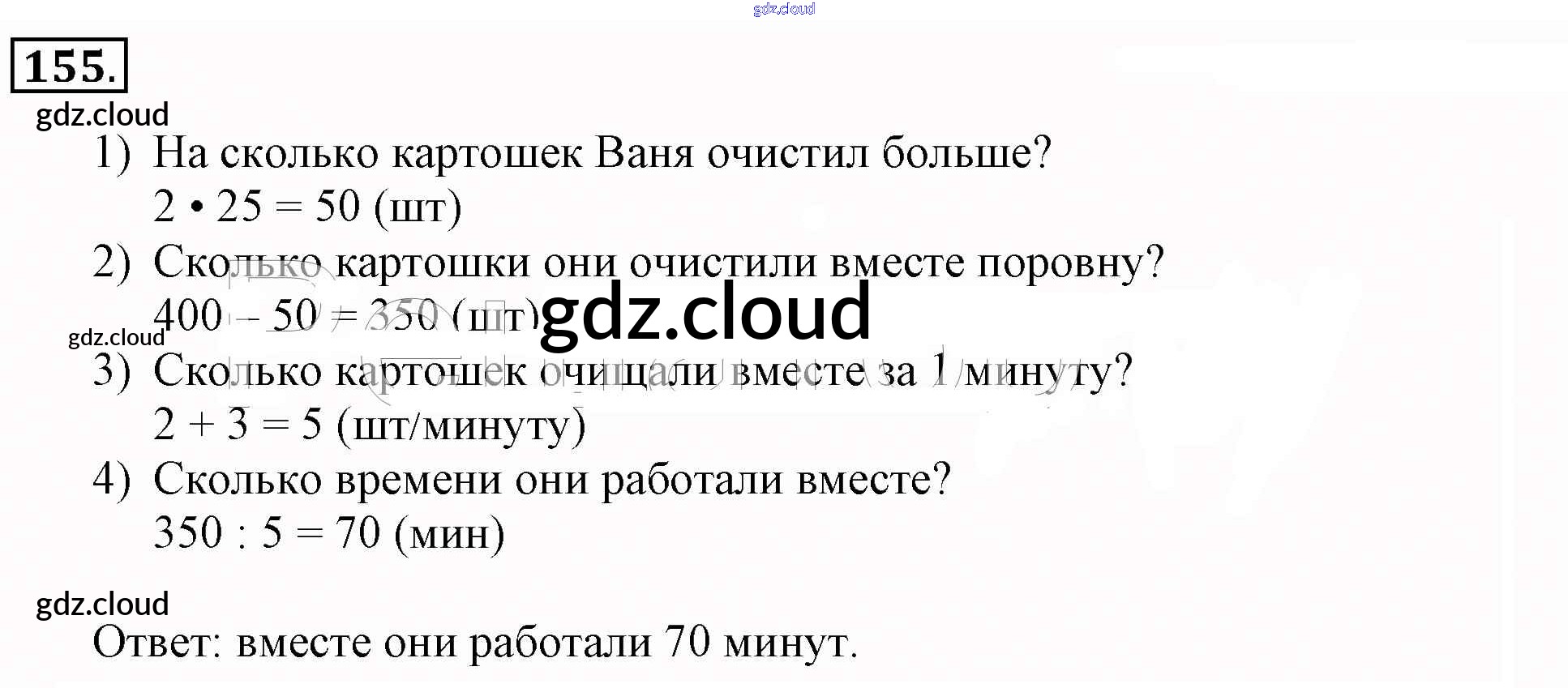 Ответ на задание 155 Рабочая тетрадь Математика за 3 (третий) класс Рудницкая, Юдачева Начальная школа XXI века 2017 Часть 1, 2
